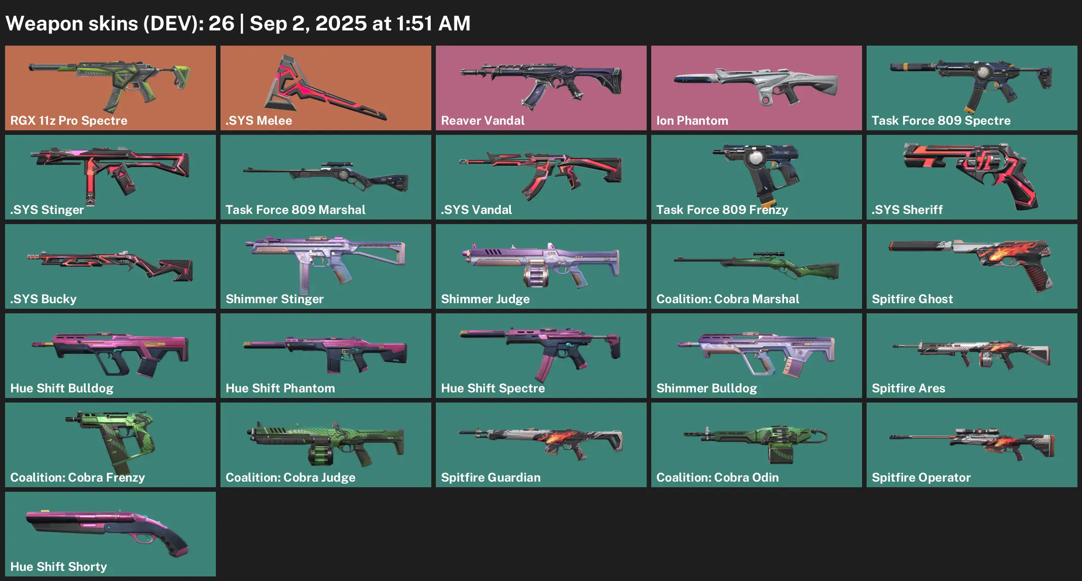 NA | Unranked | Inventory Value 5725 VP | 26 Skins | Reaver Vandal | Ion Phantom | RGX 11z Pro Spectre | .SYS Melee | Task Force 809 Spectre | .SYS Stinger | Full Access #5530