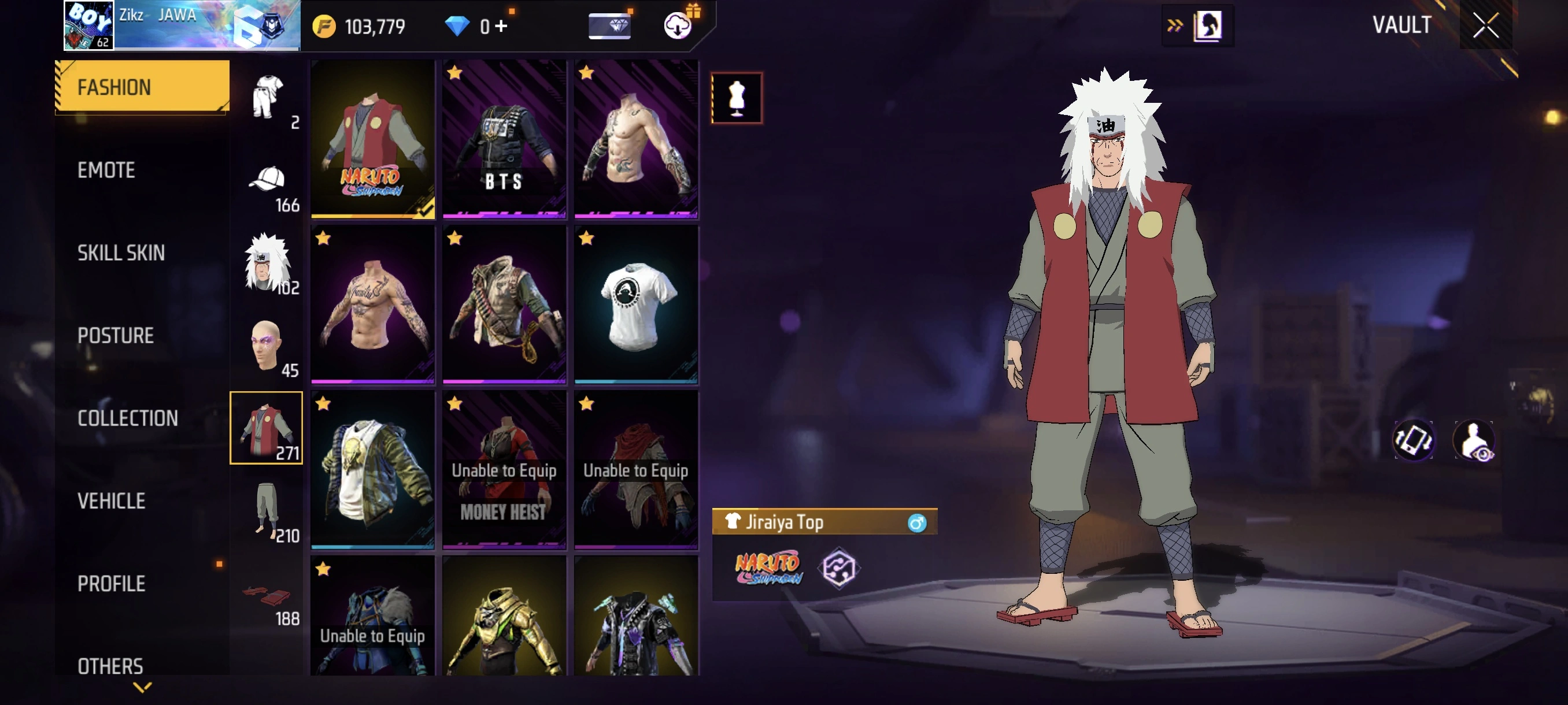 EP239|Lv62/342Weapon(3Evo+62Mythic)/271Costume/JiraiyaBundle/41Emote(11Mythic)/31Vehicle/McLarenSportsCar/BlueFlameDraco-Ak47