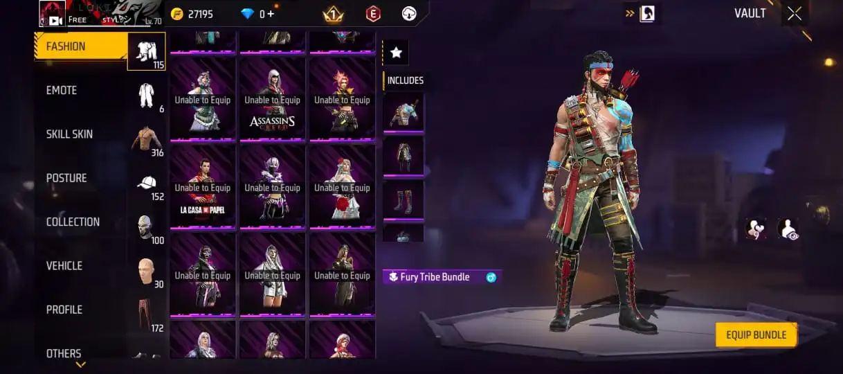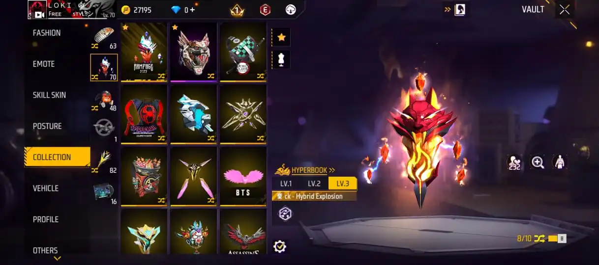 ๐ฅ Free Fire Max Account for Sale โ Level 70 | Rank Season 8 | 100K Diamonds Spent | Rare Collection