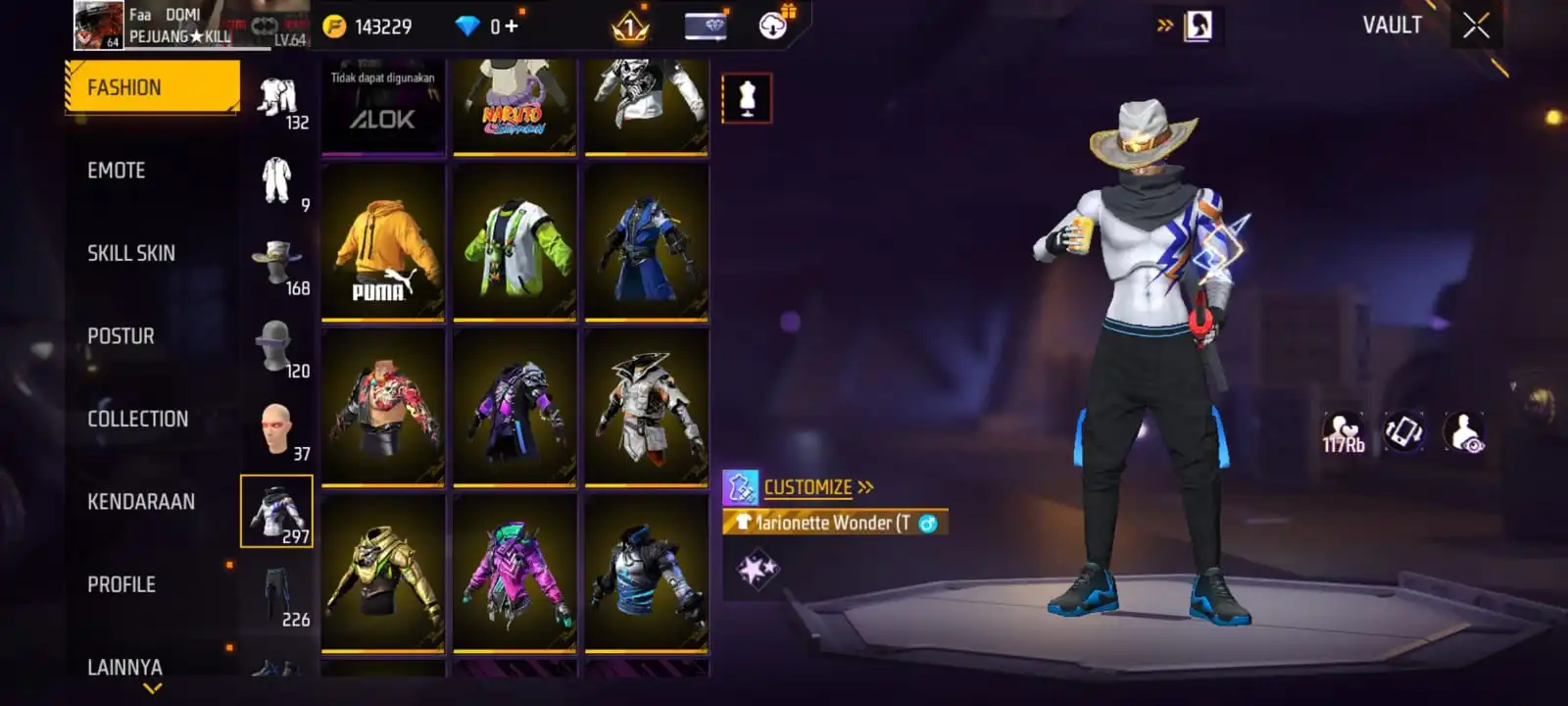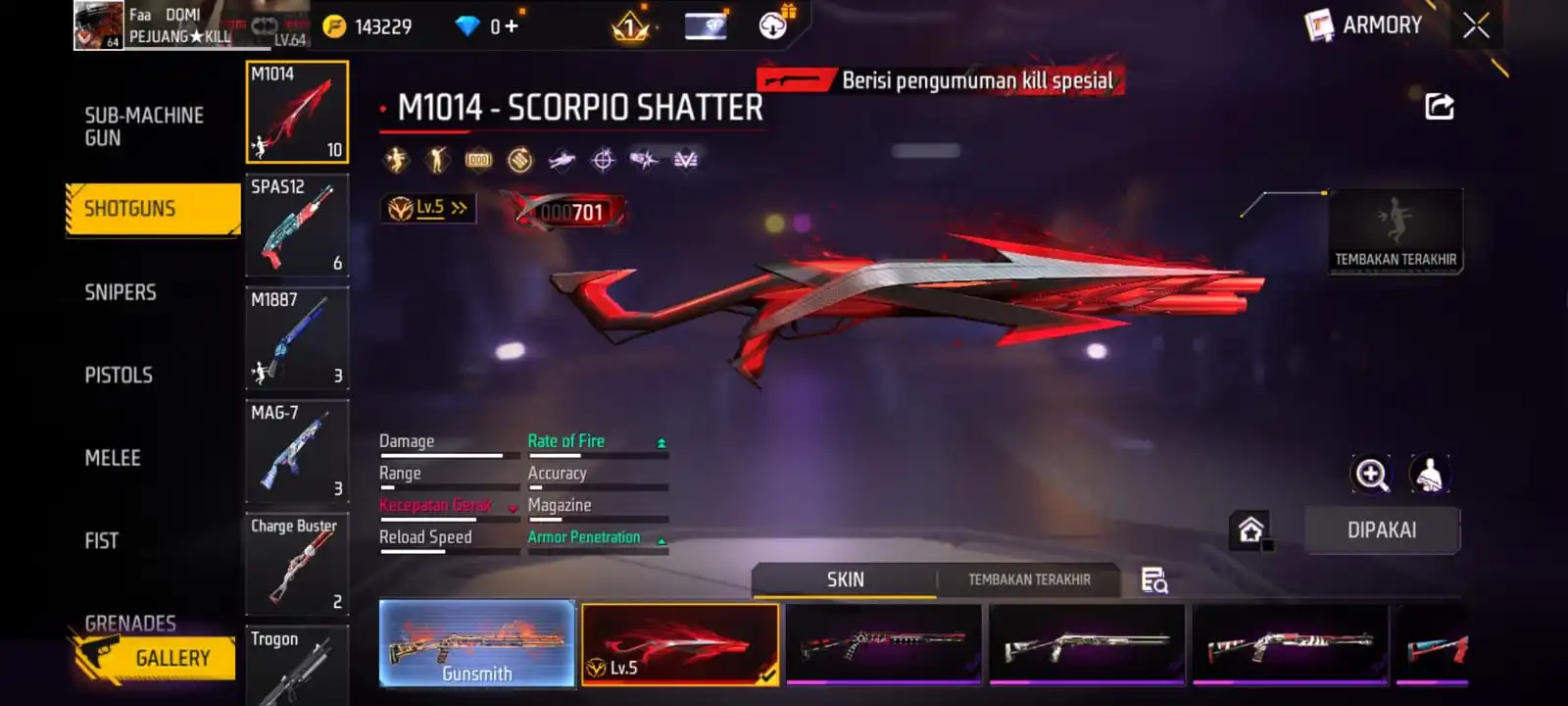 V6|LVL64|297COSTUME(25MYTHIC)|322WEAPON(3EVO+64MYTHIC)|PREDATORYCOBRA-MP40LVLMAX|SCORPIOSHATTER-M1014LVL5|MAJESCTICPROWLER-WOODPECKERLVL5