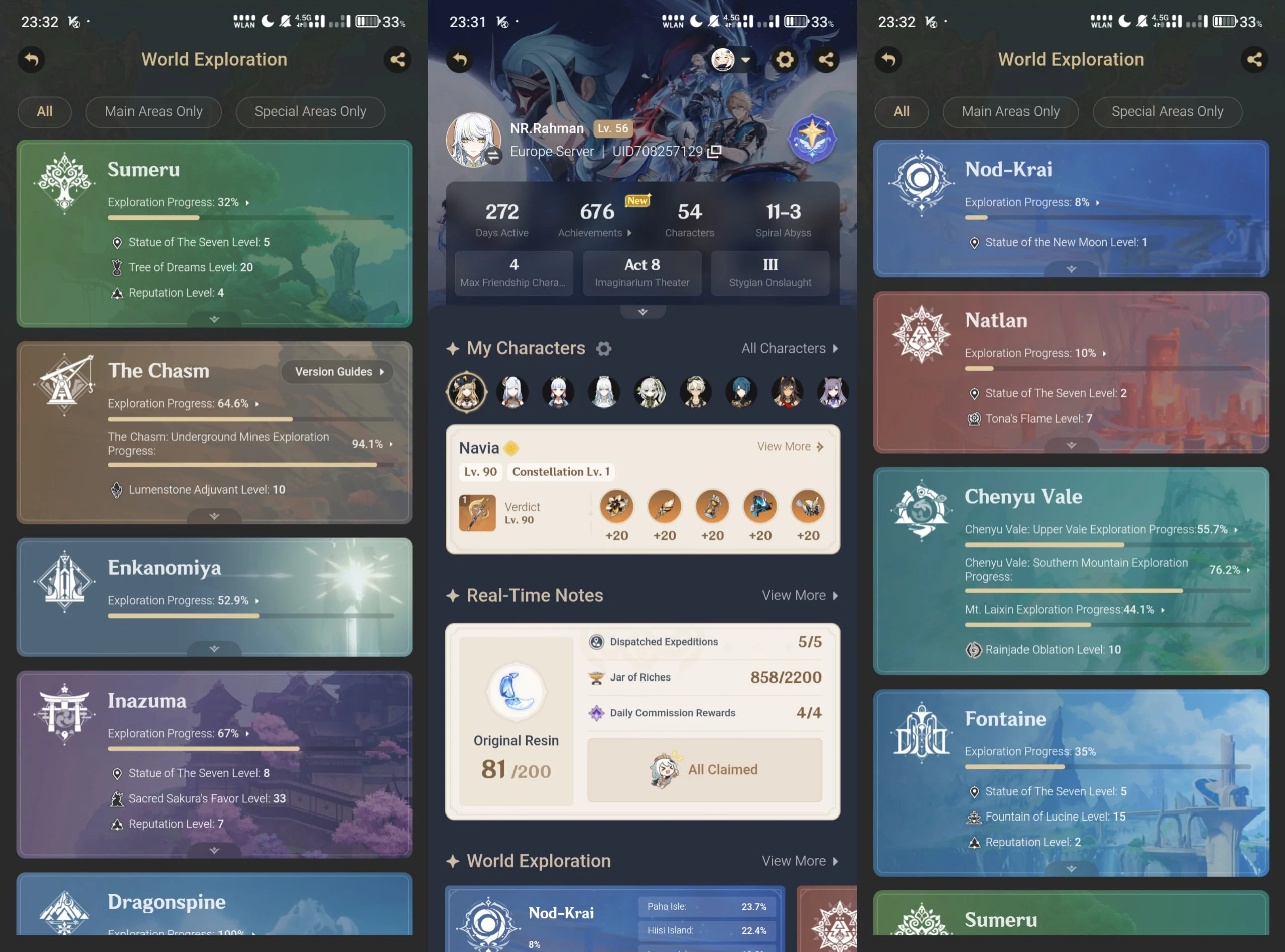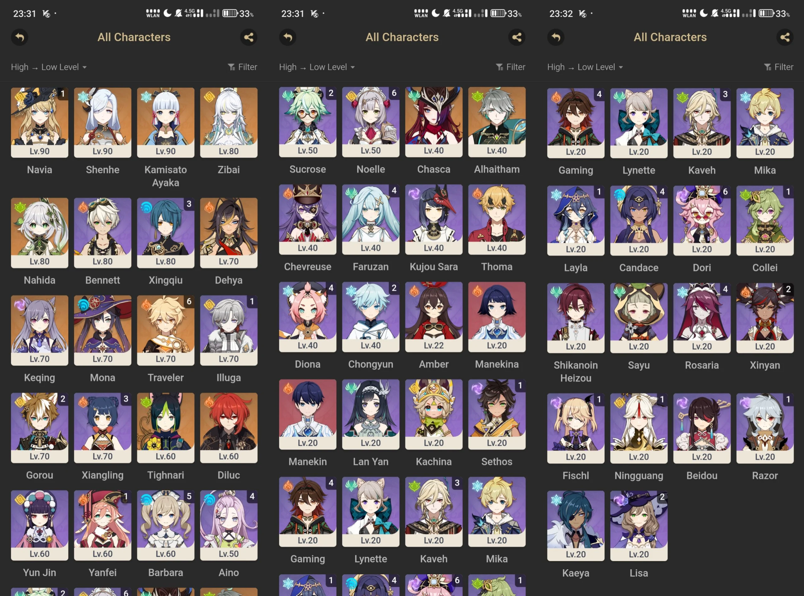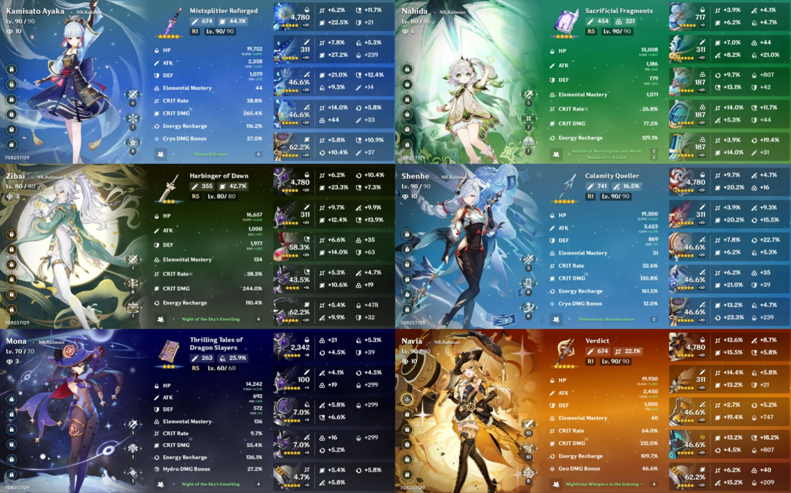All Platform ⚔️ EU 🇪🇺 AR56 🎯 54 Character 15 5'Star 🛍️ 8 Weapon 5'Star 🔑 Zibai 💎 Chasca 🧿 Nahida 🧨 Shenhe 💸 Navia 🏹 Code1453