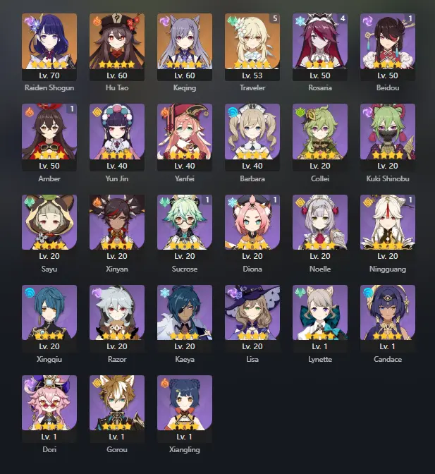 AR42 / Asia {4X 5 STAR LEGENDS} Raiden + WP / Hu Tao / Keqing / Traveler / + honkai {1-WEAPON}- FULL ACCESS lai056