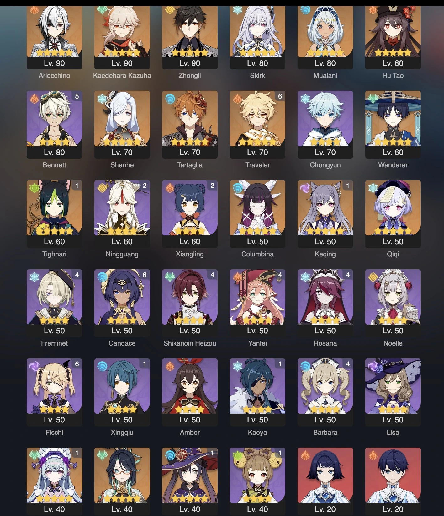 Arlecchino Kazuha Zhongli Skirk Mualani Hu tao Shenhe Tartaglia Wanderer Columbina Xianyun ar57 Male