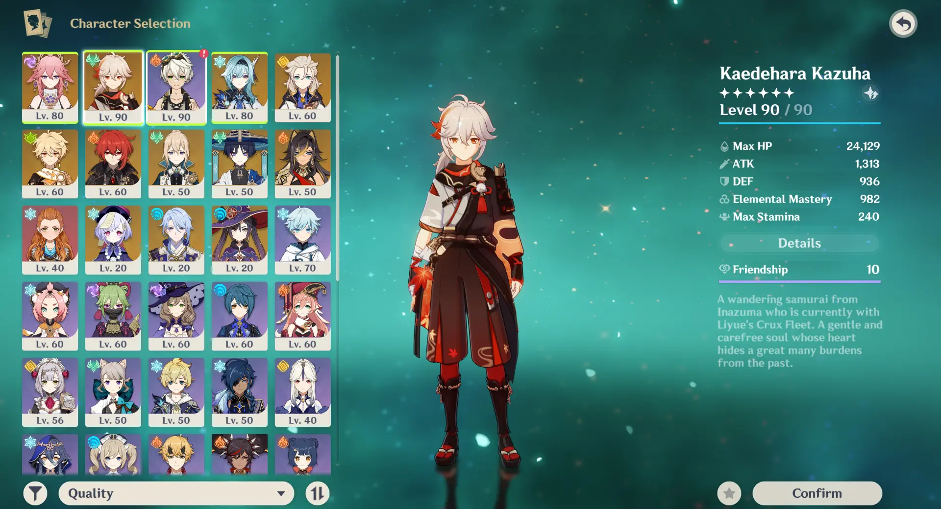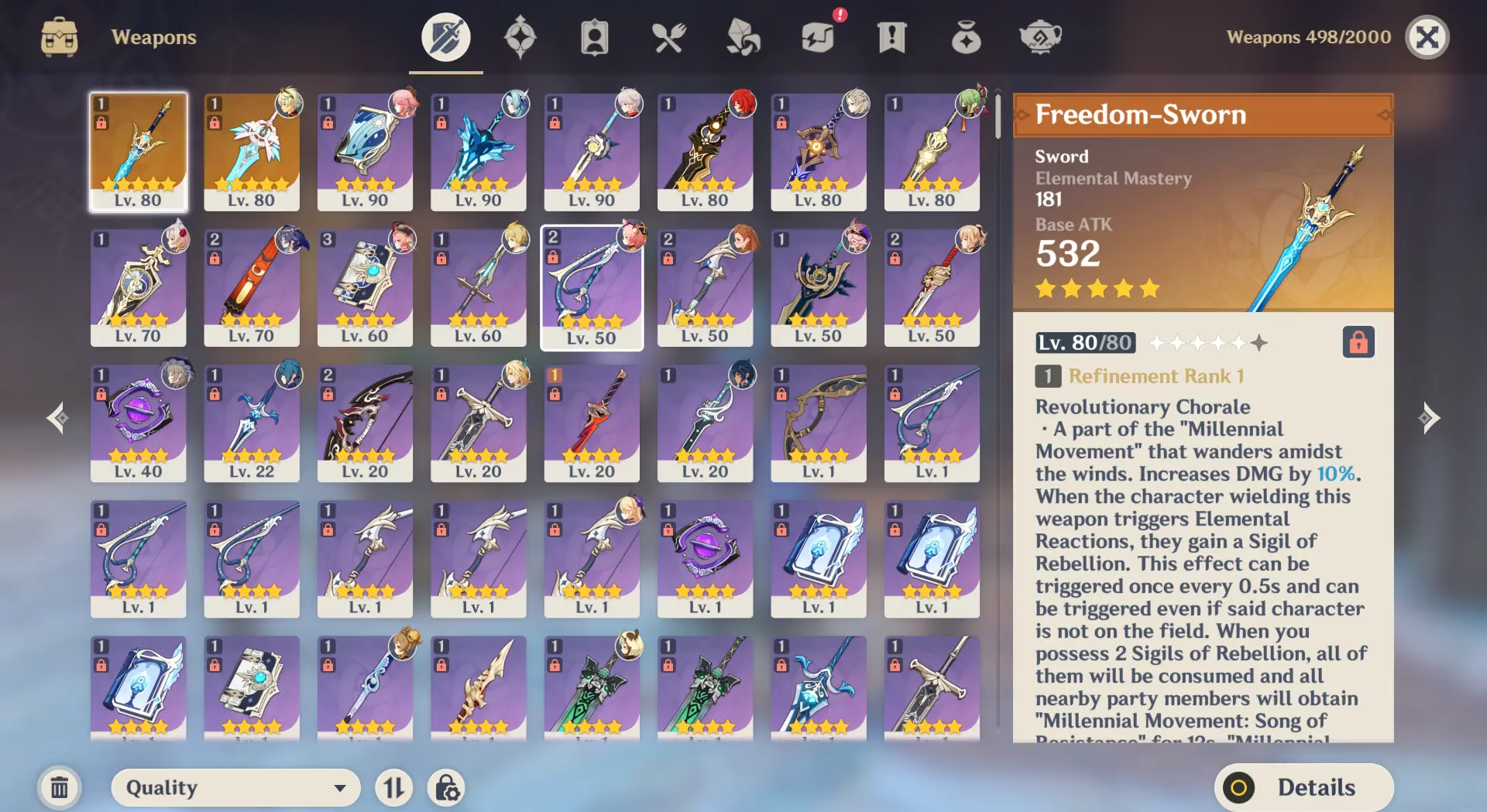 EU AR50 | 5 stars*13 KAZUHA | EULA | WANDERER | KAMISATO AYATO | YAE MIKO | ALBEDO | DILUC(C1) | JEAN(C1) | MONA | QIQI | DEHYA | FREEDOM-SWORN | SKYWARD BLADE + lots of 4* characters and weapons