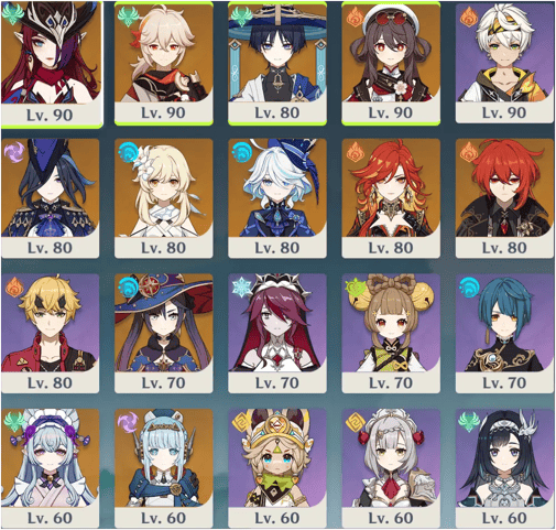 Flins Yelan Navia Zhongli Xianyun Kazuha Xiao Venti Citlali Wriothesley Ganyu Ayaka Clorinde Yae miko Raiden Alhaitham Nahida Mualani Furina Neuvillette Ayato Mavuika Arlecchino Hutao ar60