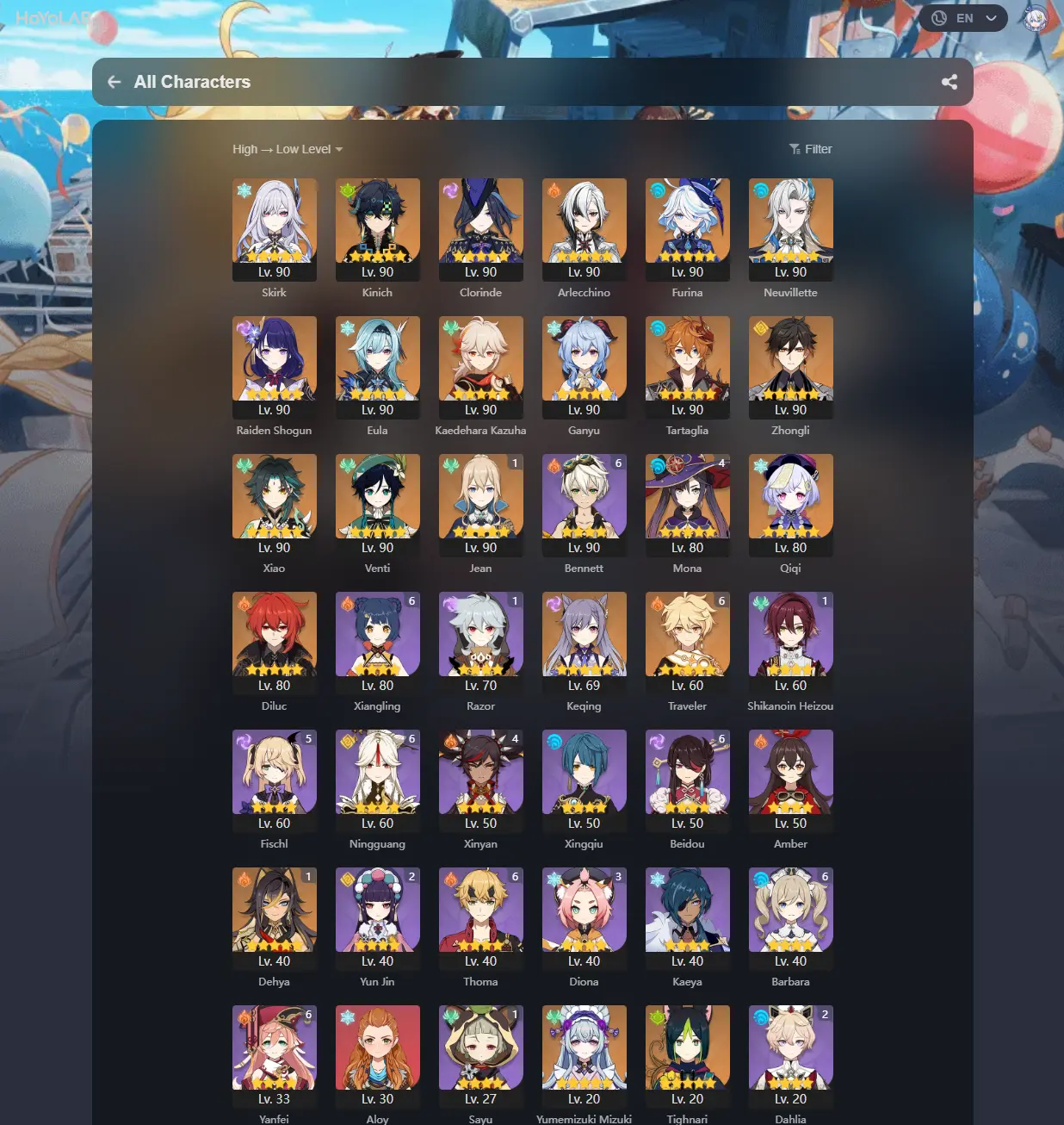 #GE873 Europe AR59 | LEGS:33 | Arlecchino+Furina+Neuvillette+Raiden+Kazuha+Ganyu+Tartaglia+Zhongli+Xiao+Venti+Clorinde+Kinich | LEG HEROES/WEAPONS: 24/4