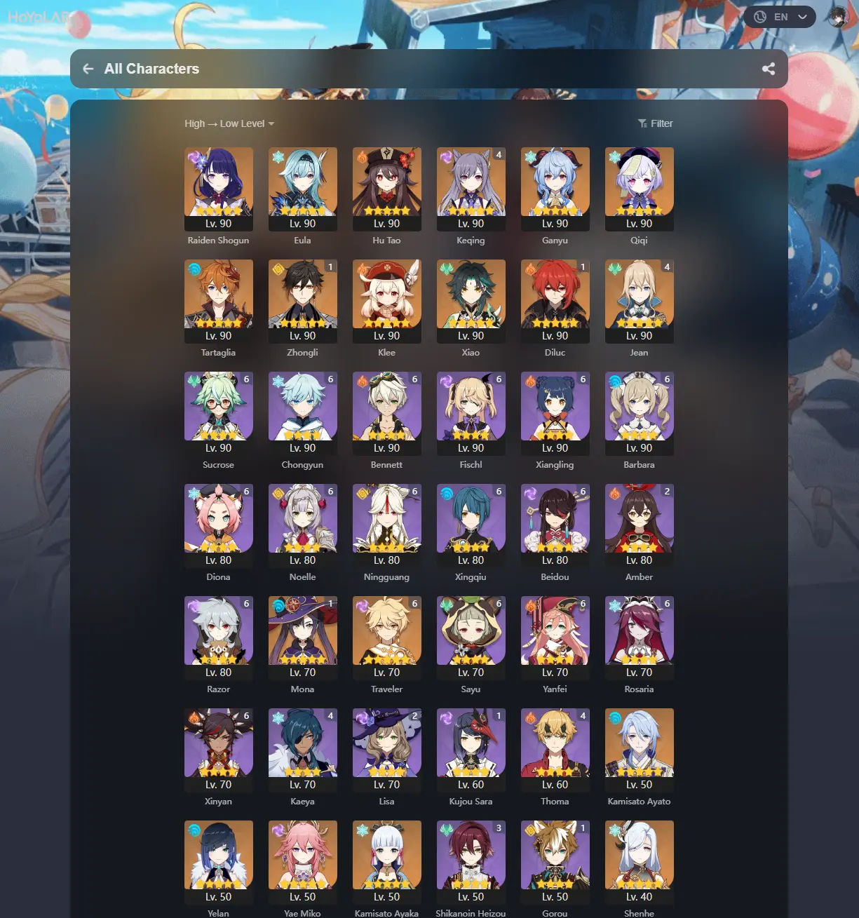 #GE874 Europe AR59 | LEGS:46 | Raiden+Yelan+Yae+Ayaka+Shenhe+Hu Tao+Ganyu+Tartaglia+Zhongli+Xiao+Klee+Ayato+Itto+Arlecchino+Neuvillette+Nahida+Nilou+Wanderer | LEG HEROES/WEAPONS: 28/4