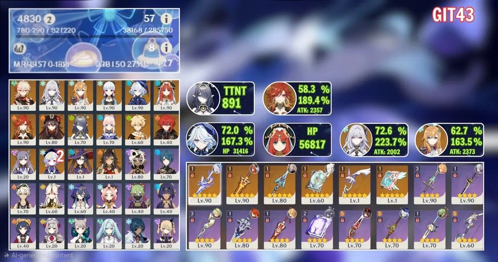 Kazuha Skirk sig,  Ayaka Furina Nilou Mavuika Hutao Lauma Kokomi Escoffier ar57