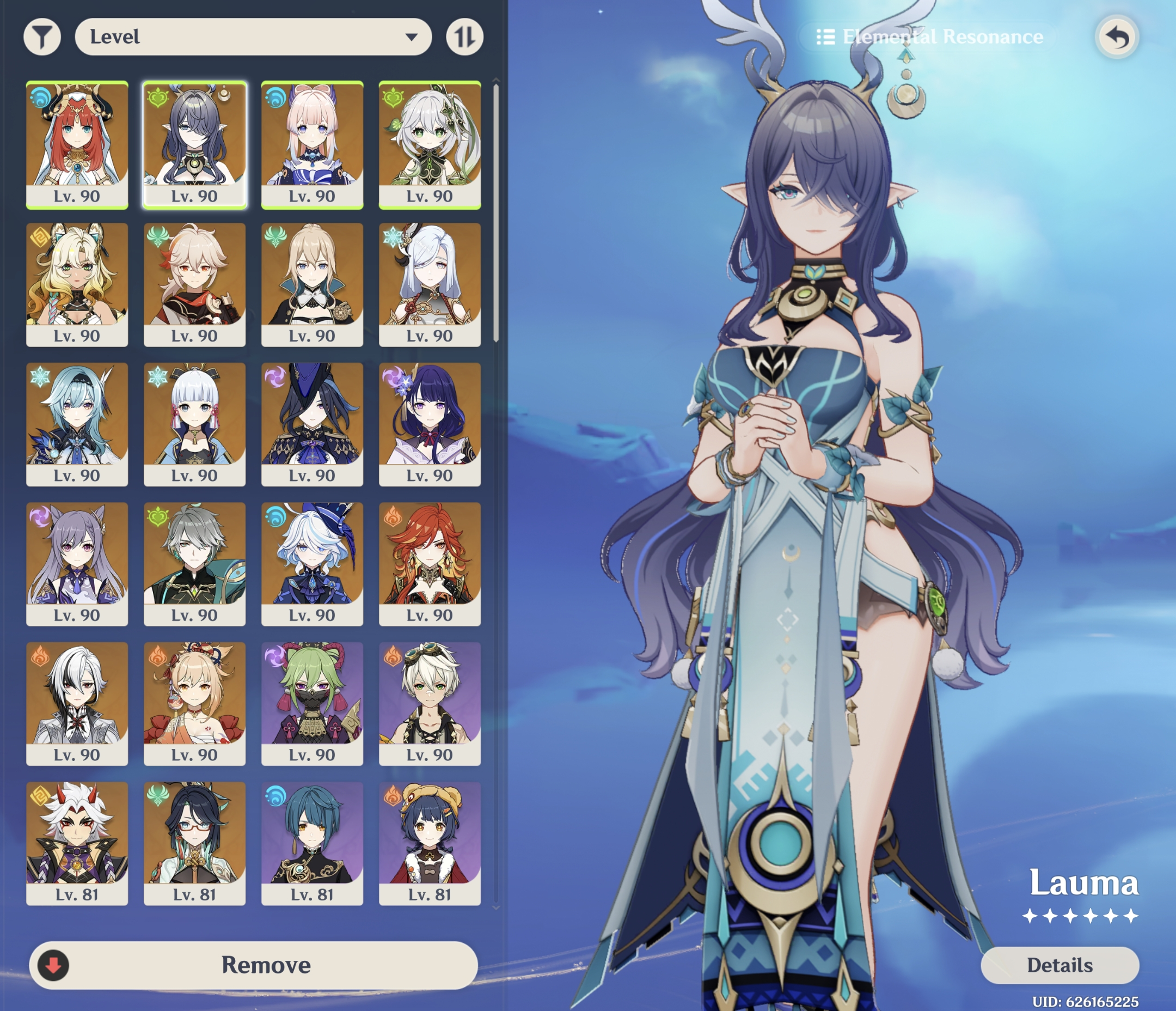 Nilou Lauma Kokomi Nahida Xilonen Kazuha Shenhe Eula Ayaka Clorinde Raiden Alhaitham Furina Mavuika Arlecchino Yoimiya Itto Xianyun Venti Cyno Emline Baizhu Yelan Ayato ar60