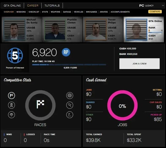 Jump into GTA 5 missions with male character accounts!
