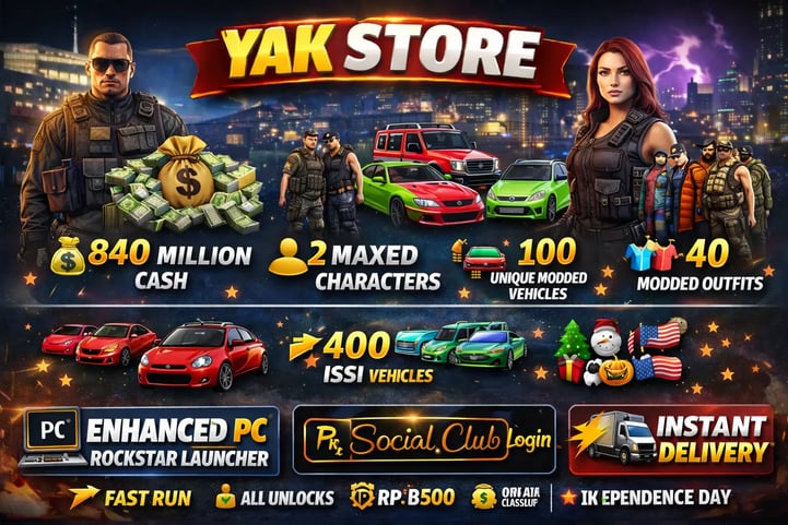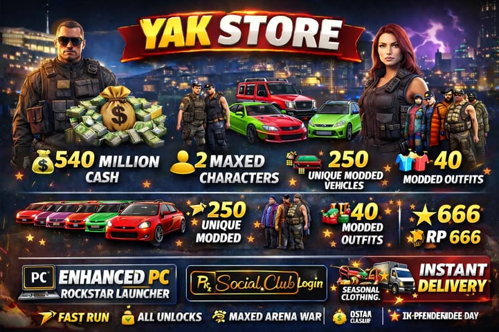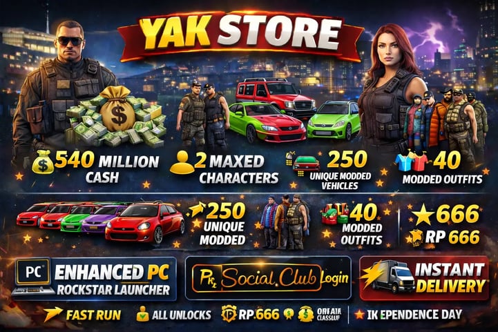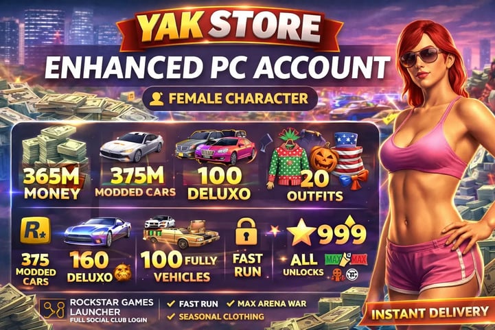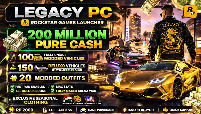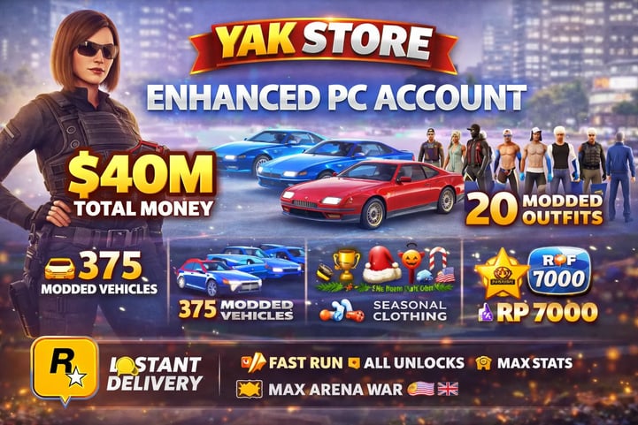 🚀 ENHANCED PC | 🎮 ROCKSTAR LAUNCHER | 💰 40M PURE CASH | 🚗 250 MODDED VEHICLES | 👕 20 MODDED OUTFITS | ⚡ FAST RUN | 🔓 ALL UNLOCKS | 📦 INSTANT DELIVERY