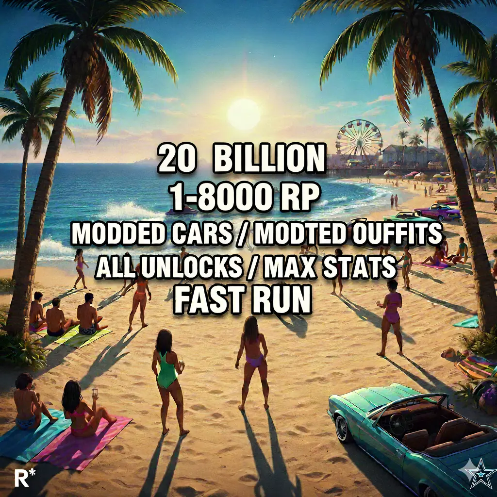 🚀【ENHANCED ⸱ ROCKSTAR】🤑 20 BILLION CASH 🚗 10 Modded Cars 👕 20 Modded Outfits 🌐 RP level:500 ✨ Fast RUN 🔥 MAX Stats ✅ ALL Unlocked 🎉 Instant Delivery