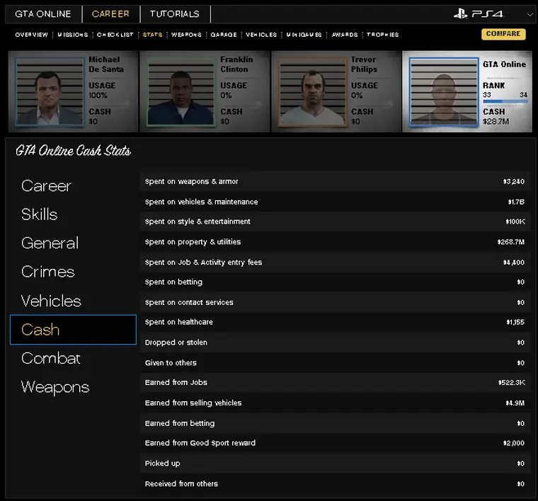 [PS4] Dual Character GTA 5 Modded Account ✦ Online Elite Pack ✦ 1.5 Billion (29M Cash + 505 Cars) | RP Rank 35 | Instant Delivery | Full Access | OF7
