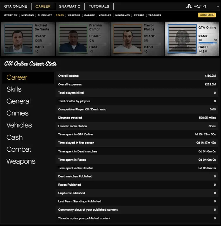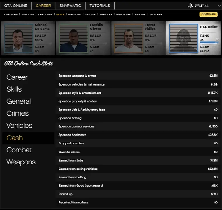 [PS4] Dual Character GTA 5 Modded Account ✦ Turbo Pack ✦ 1.5 Billion (4M Cash + 516 Cars) | RP Rank 30 | Instant Delivery | Full Access | OF14