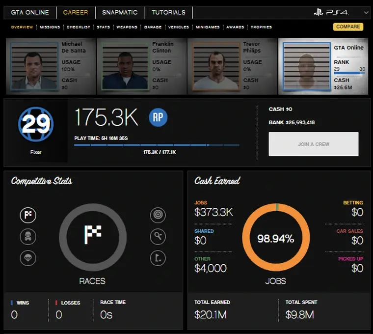 [PS4] GTA 5 Modded Account 💣 $109.98 Million Cash + Cars | RP Rank 30 | Instant Delivery | PZ5