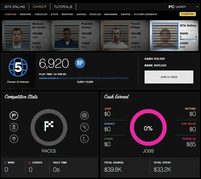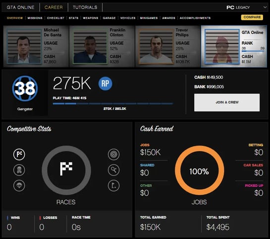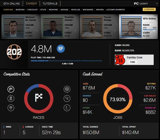 SOCIAL CLUB / ROCKSTAR / PC / LEGACY | $1M PURE CASH | RP level 5 | MALE