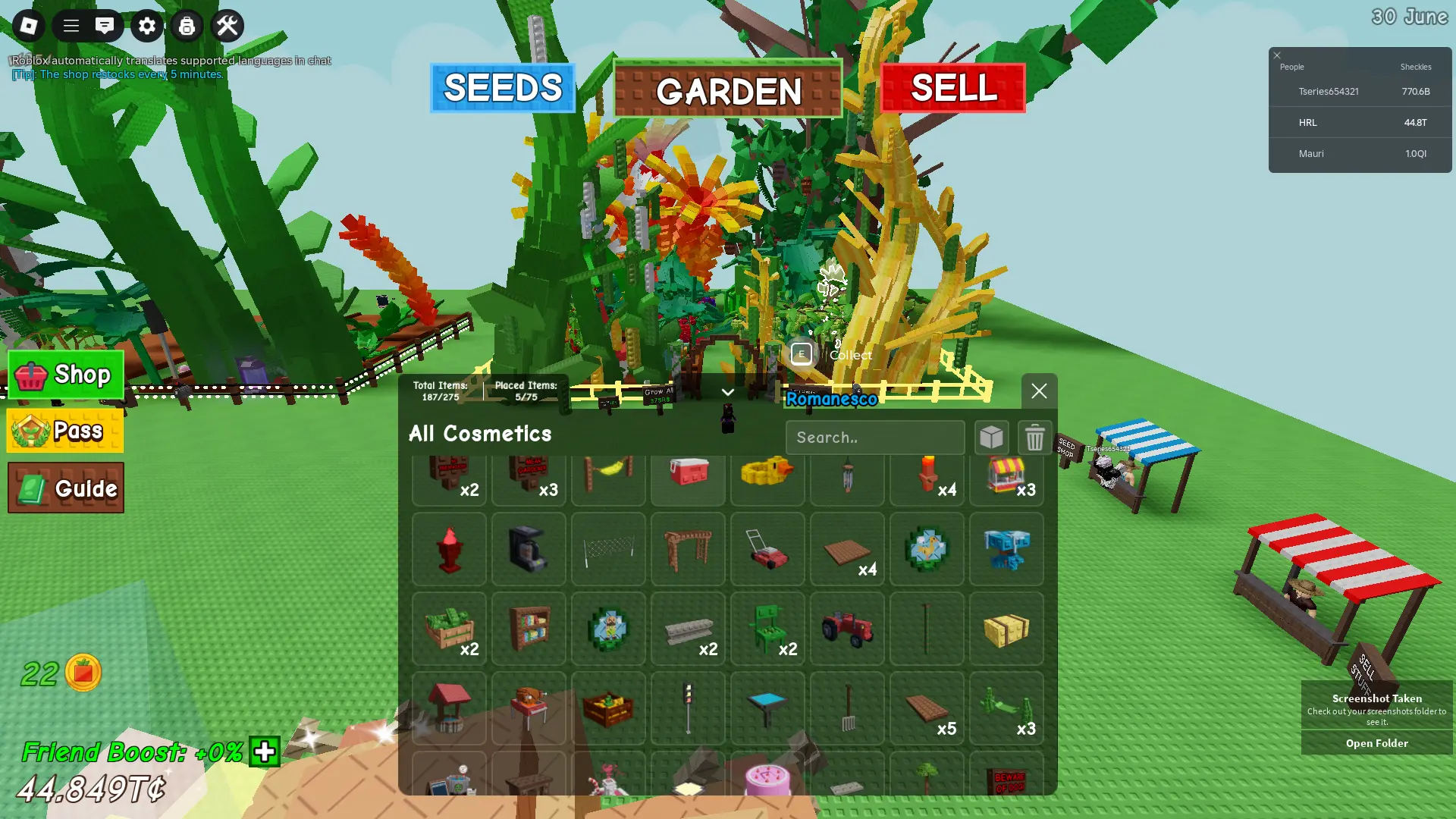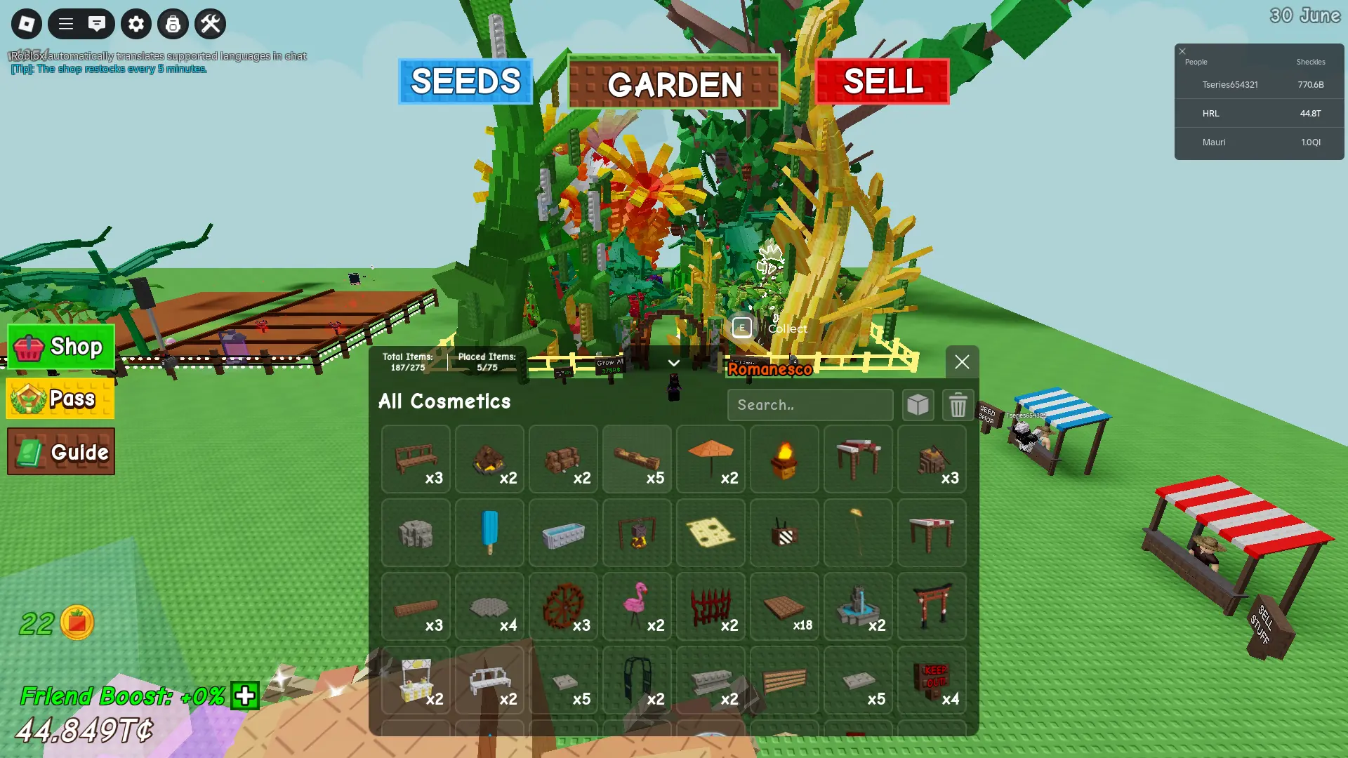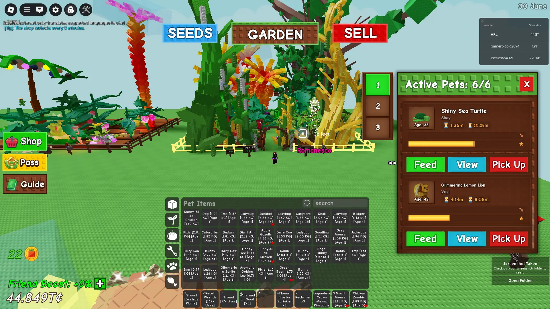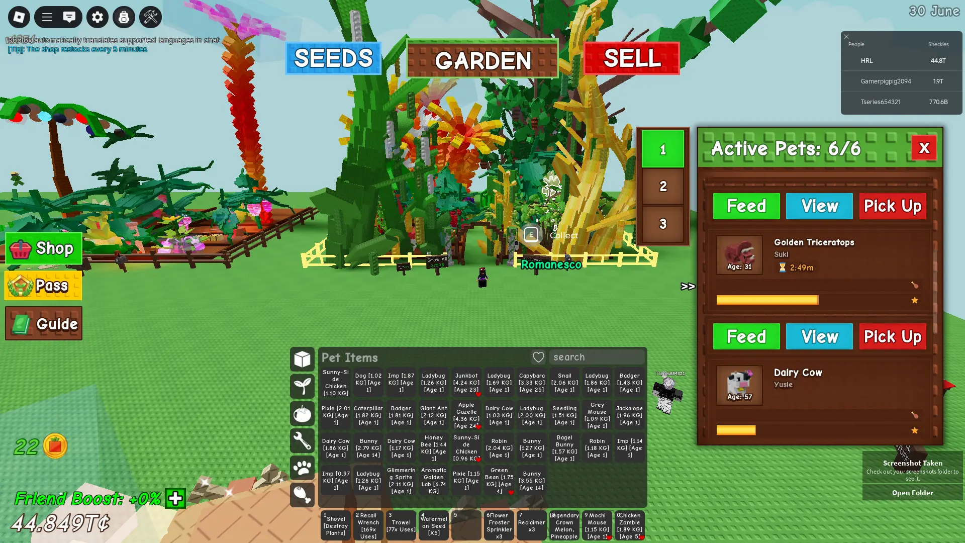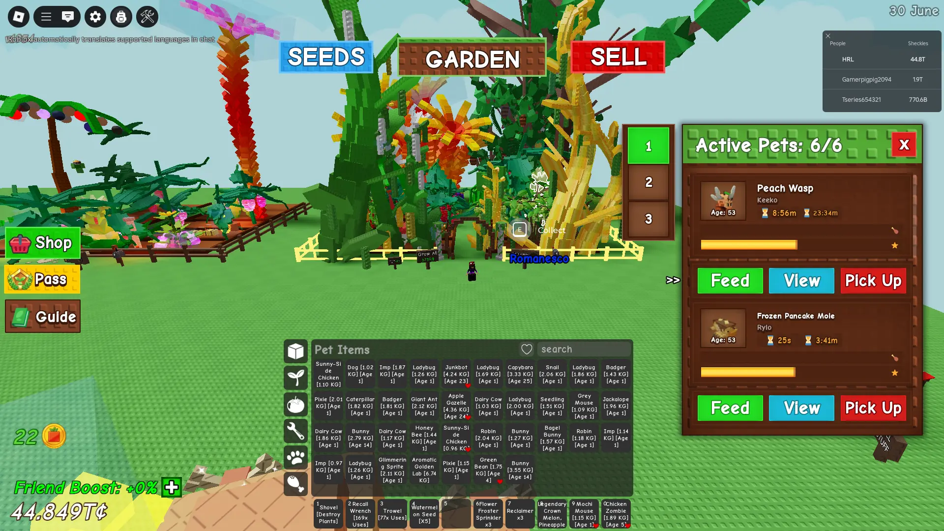 Grow a Garden ⸱ GOOD ACCOUNT | 6 ACTIVE PETS AGE 30 TO 57 YEARS | 44.849T I 275 COSMETICS | INSTANT DELIVERY