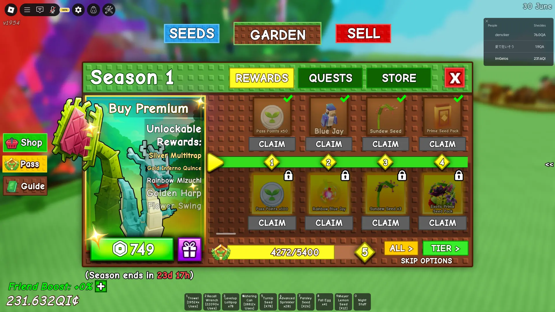 Grow a Garden ⸱ HUGE ACCOUNT | Horned Dinoshroom ⸱ Wispwing ⸱ Bone Blossom | 24 ACTIVE PETS AGE 7 TO 100 YEARS | 231.632QI | 375 COSMETICS | ACTIVE PASS | INSTANT DELIVERY