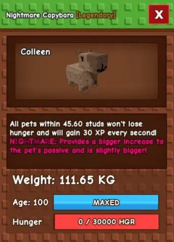 Colossal Nightmare Capybara 101 kg - Grow A Garden