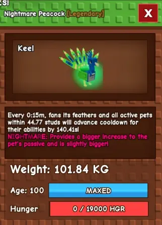 Semi Titanic Nightmare Wasp 67-68 kg cd : 60s (cooldown other pets by 113s) - Grow A Garden