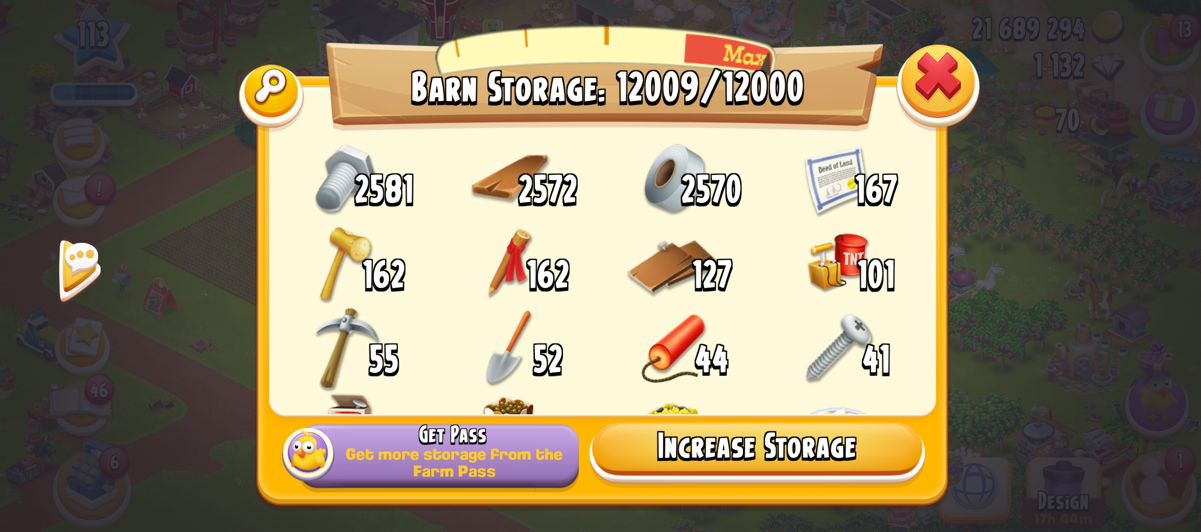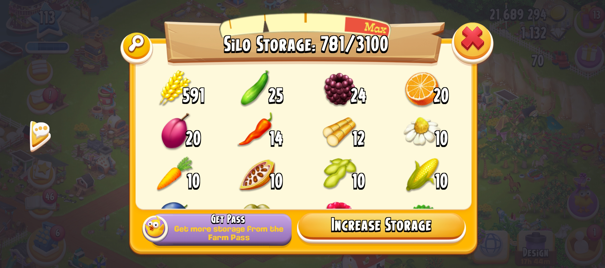110 Level | 12000 Barn Storage | 3000 Silo Storage | 20 Million Coin | 1000 Gems | Android & IOS