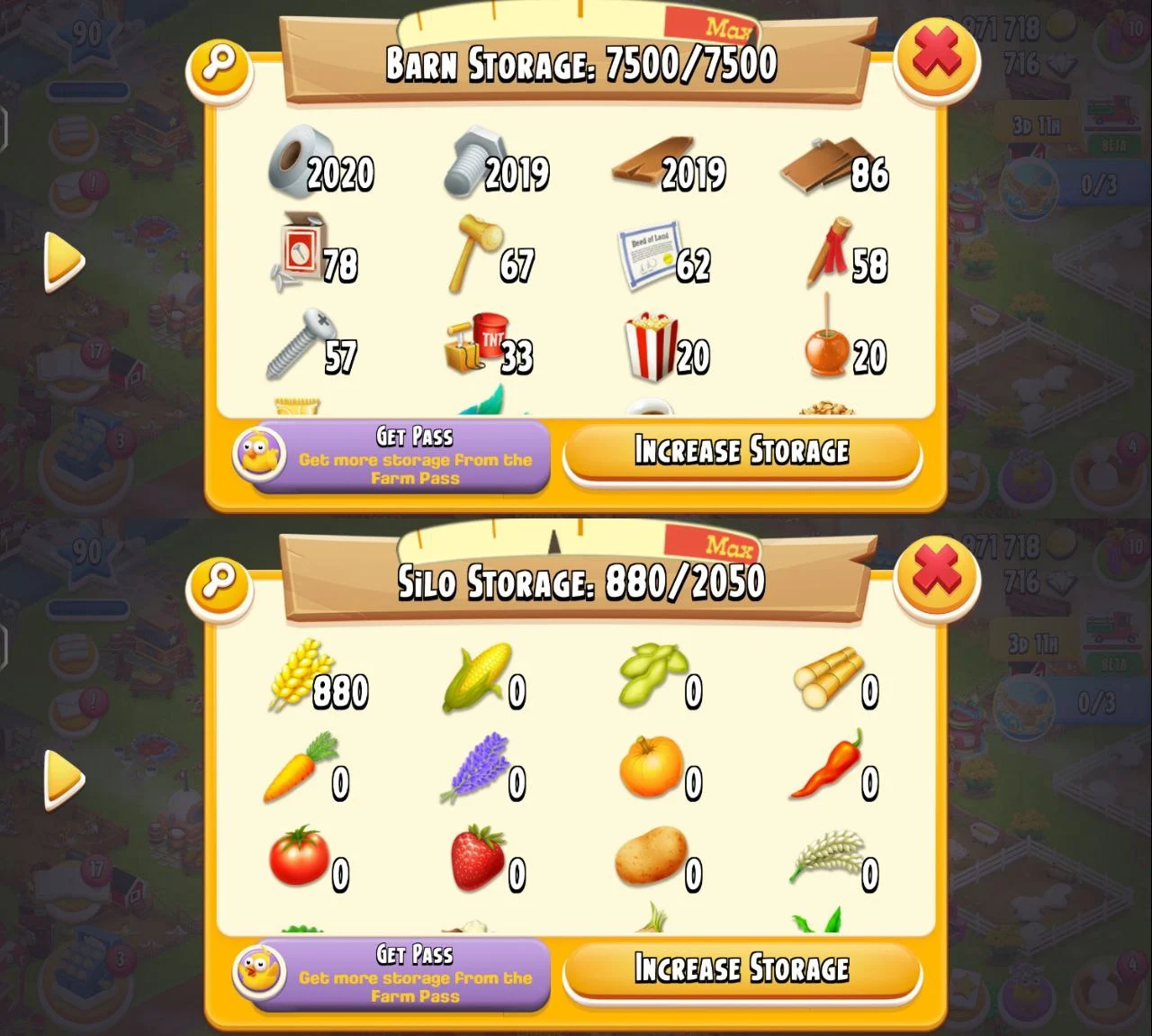 🔥7500 BARN STORAGE LEVEL 90🔥SILO 880:2050🔥7500 BARN FILLED🔥8.9 MILLON COINS🔥716 DIAMOND🔥INSTANT DELIVERY🔥