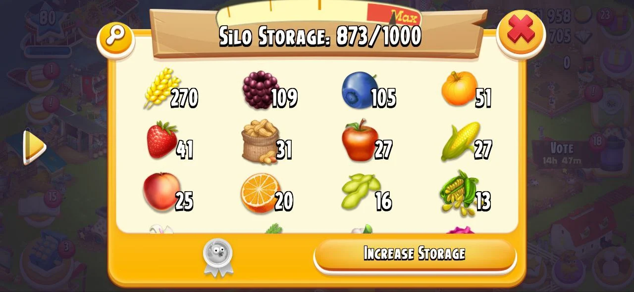 ✨️ CHEAPEST LEVEL 80 HAY DAY FARM 🌾 4351958 COINS 🪙 4002/4000 BARN STORAGE💪 873/1000 SILO STORAGE🎯 705 GEMS💎 SUPPORTS BOTH iOS&Android✅️ INSTANT DELIVERY 🚚
