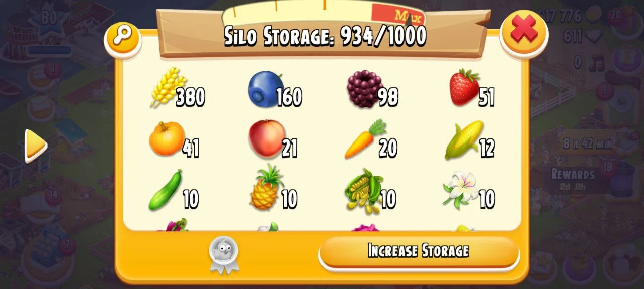 ✨️ CHEAPEST LEVEL 80 HAY DAY FARM 🌾 4617776 COINS🪙 3450/4100 BARN STORAGE💪 934/1000 SILO STORAGE🎯 611 GEMS💎 SUPPORTS BOTH iOS&Android✅️ INSTANT DELIVERY 🚚