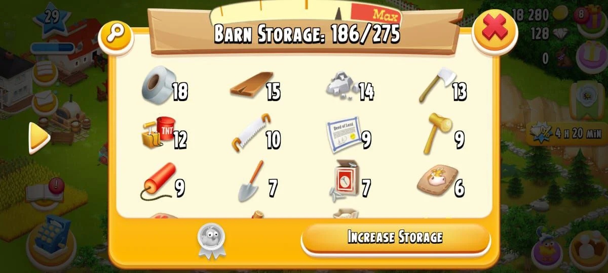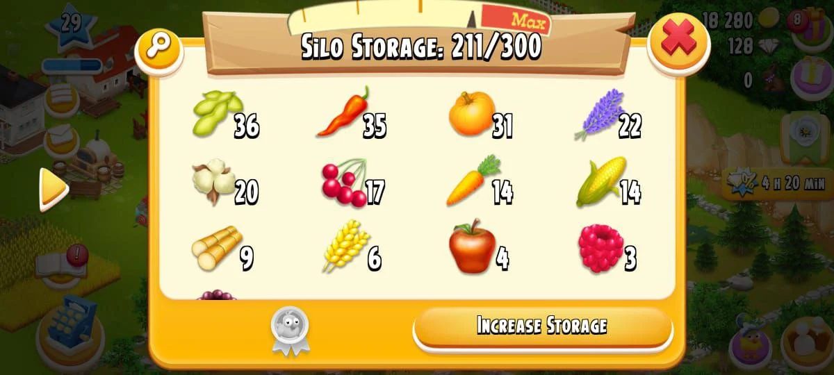 🔥[DG-1] LEVEL 29 186 BARN 211 SILO | 18280 COINS | STORED DECORATION | RENAME AVAILABLE | INSTANT DELIVERY