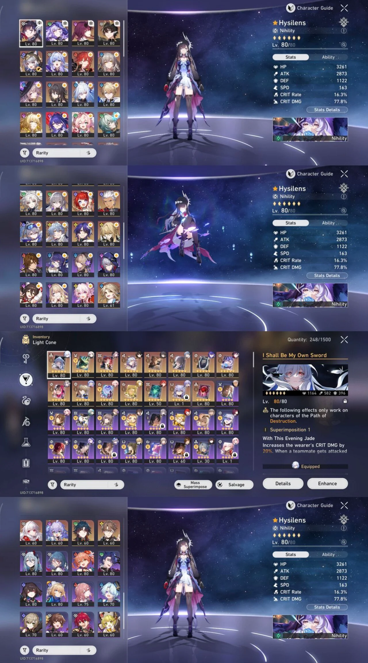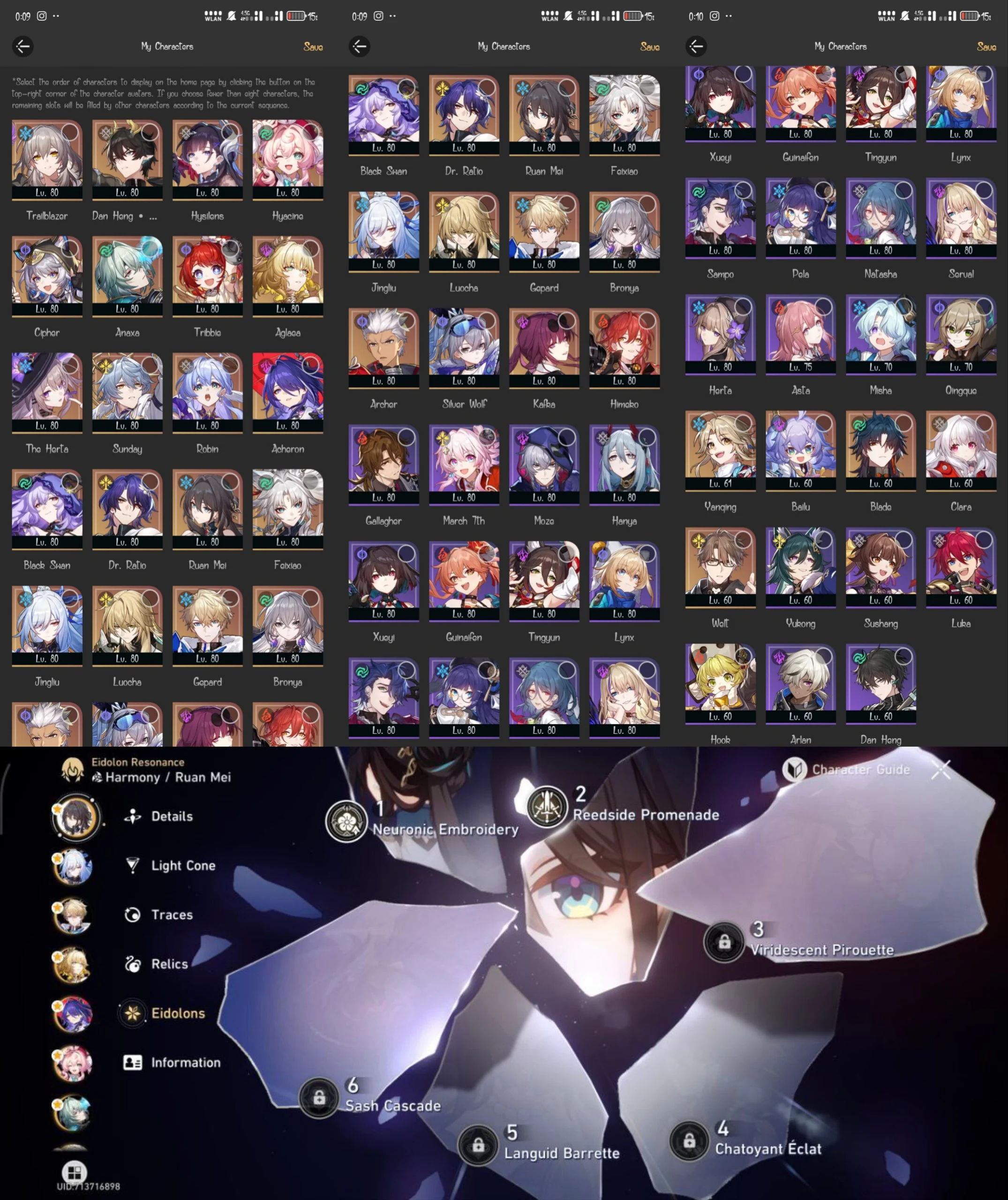 All Platform 🎮 EU 🇪🇺 Level70 🛍️ 51 character 29 5'Stars 🌟 15 Weapon 5'Star 🌟 Hysilens 🎯 The Herta 💎 Anaxa 💯 Hyacine 🧩 Code918