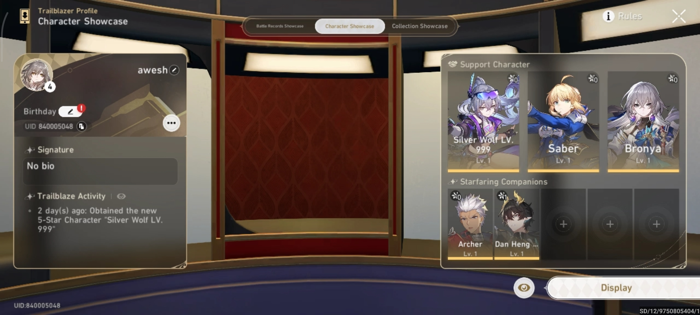 [Asia] TL 4 | Silver Wolf LV 999 + Saber + Bronya + Archer + Dan Heng PT + Fast delivery!