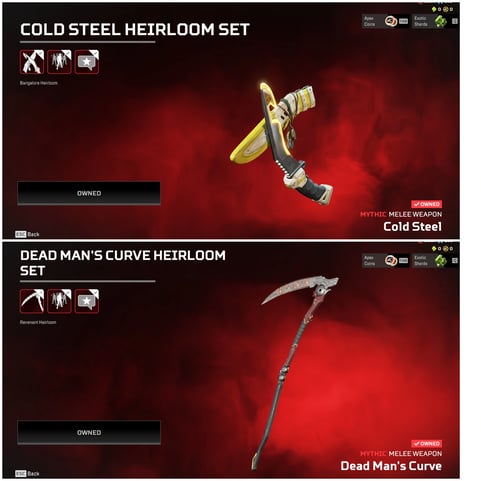 Apex Legends Heirloom računi - profili koji već uključuju Heirloom kozmetiku, koja ima službenu stopu pada od 0.045% prije Apex Pay-a s garantiranim dobivanjem tek nakon otvaranja 500 paketa