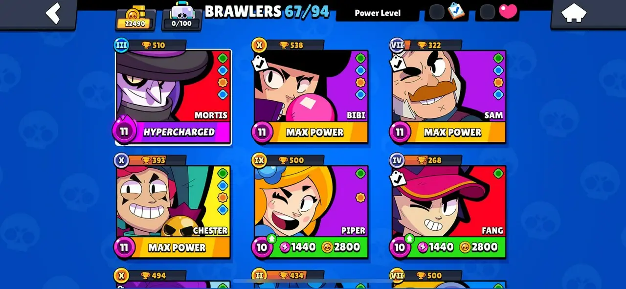 ✦ 22K TROPHIES ⇨ 70+ SKINS ◆ 67 BRAWLERS ♟ 4 MAX ⬡ 13 HYPERCHANGE (MAX+ READY TO UNLOCK) ♔ 10 GEMS | NBS2