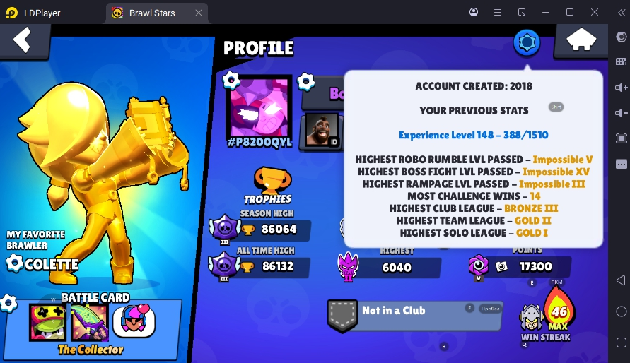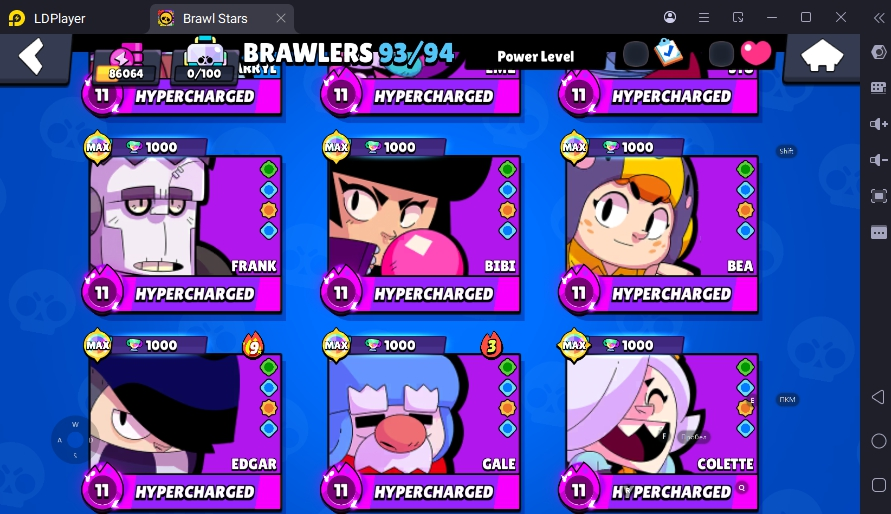 263 SKINS 💯 STAR SHELLY 💜 86.064 TROPHIES 🏆 93 BRAWLERS 🐼 34 HYPERCHARGED 🩸 37 MAX BRAWLERS 💛 WEREWOLF LEON 🧡 WHITE WOLF LEON 🧡 HEROINE BIBI 🧡 TRIXIE COLETTE 🧡 BORN BAD BUZZ 💯