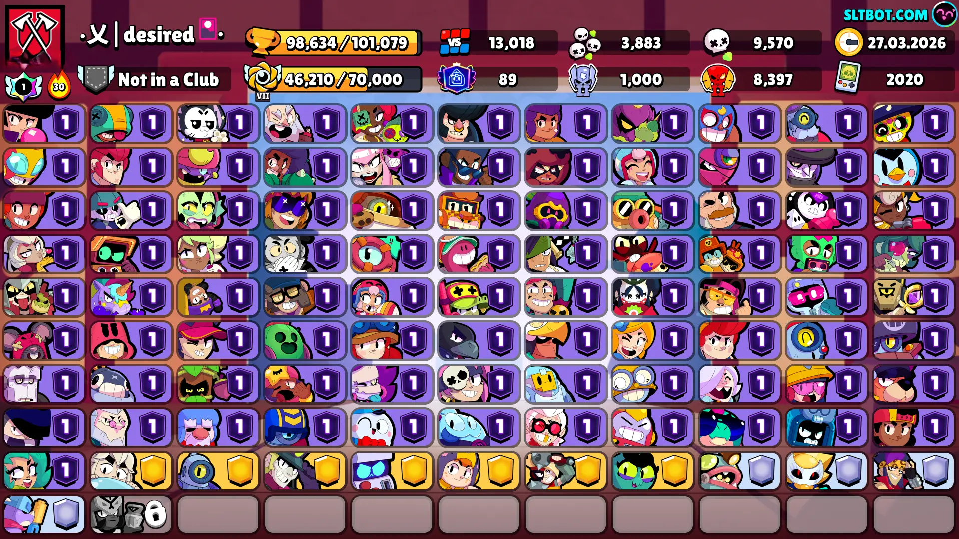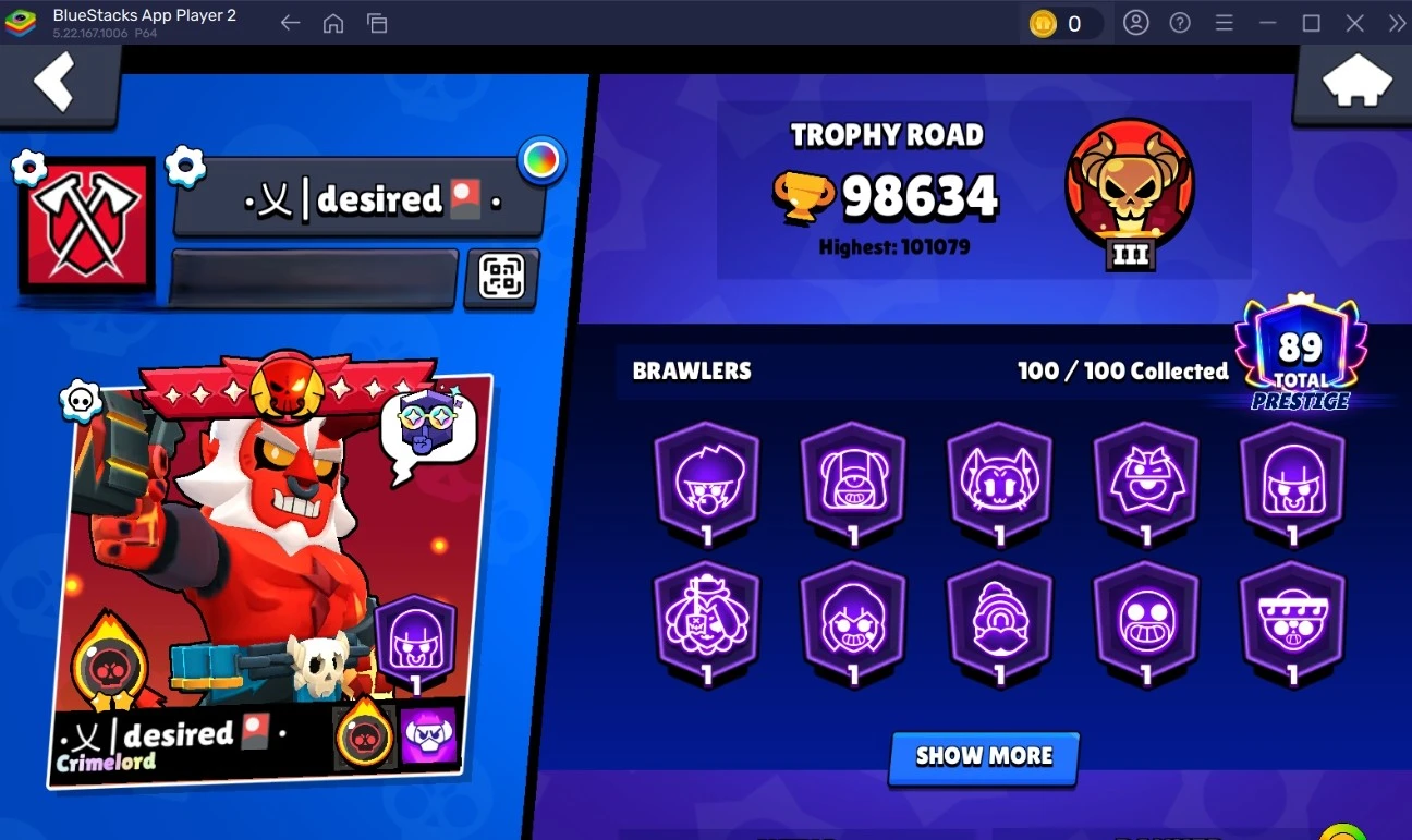 430 SKINS 💯 OLD PRESTIGE 💜 METEORIC FAME 💜 R35 PIN 💜 98.634 TROPHIES 🏆 100 BRAWLERS 🐼 96 HYPERCHARGED 🩸 89 PRESTIGE 💜 100 MAX BRAWLERS 💛 36 BUFFIES 🔑 WEREWOLF LEON 🧡 HEROINE BIBI 🧡 FURIOUS FANG 🧡 TRIXIE COLETTE 🧡 KING LOU 💯 80K 90K 100K