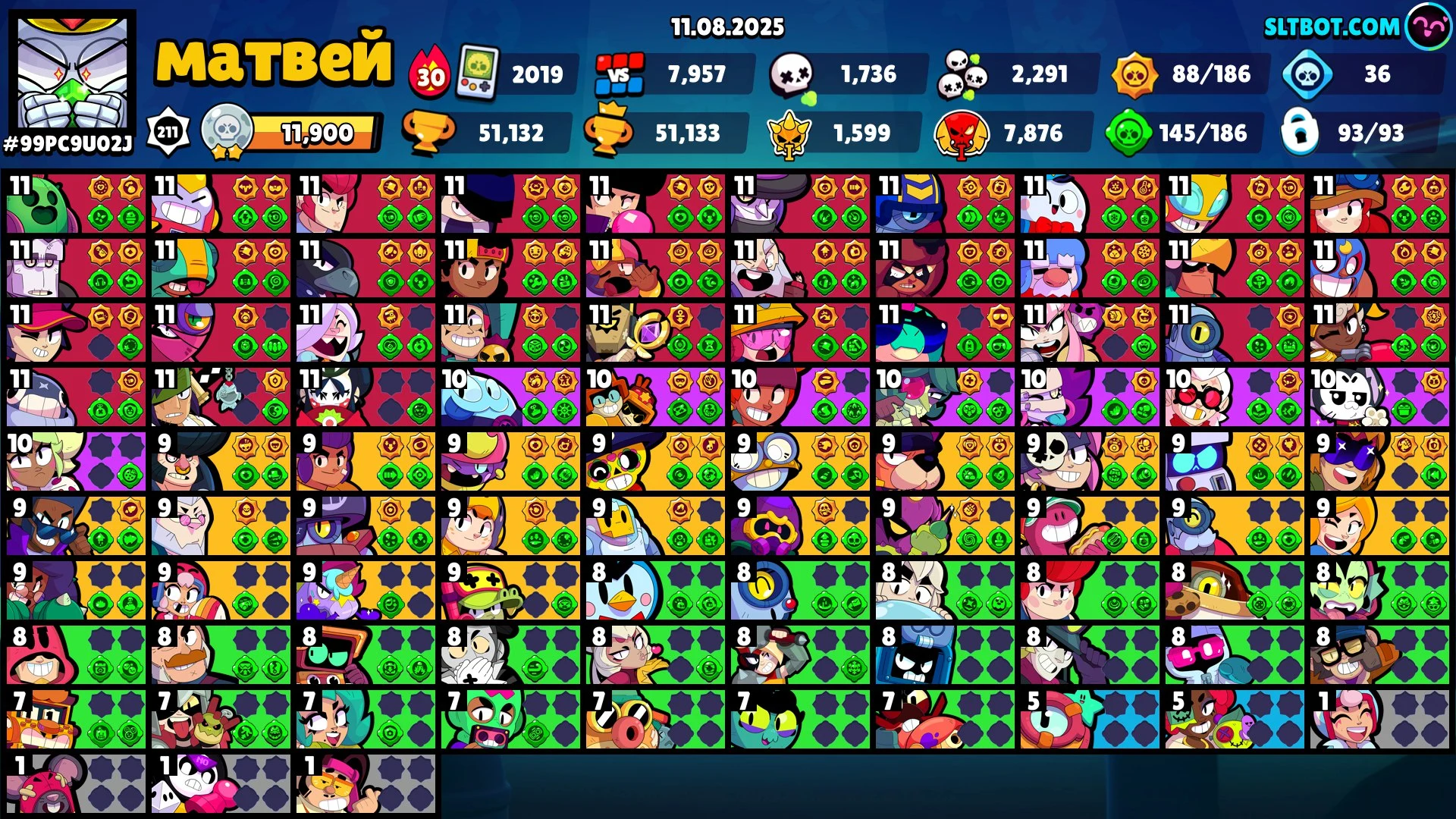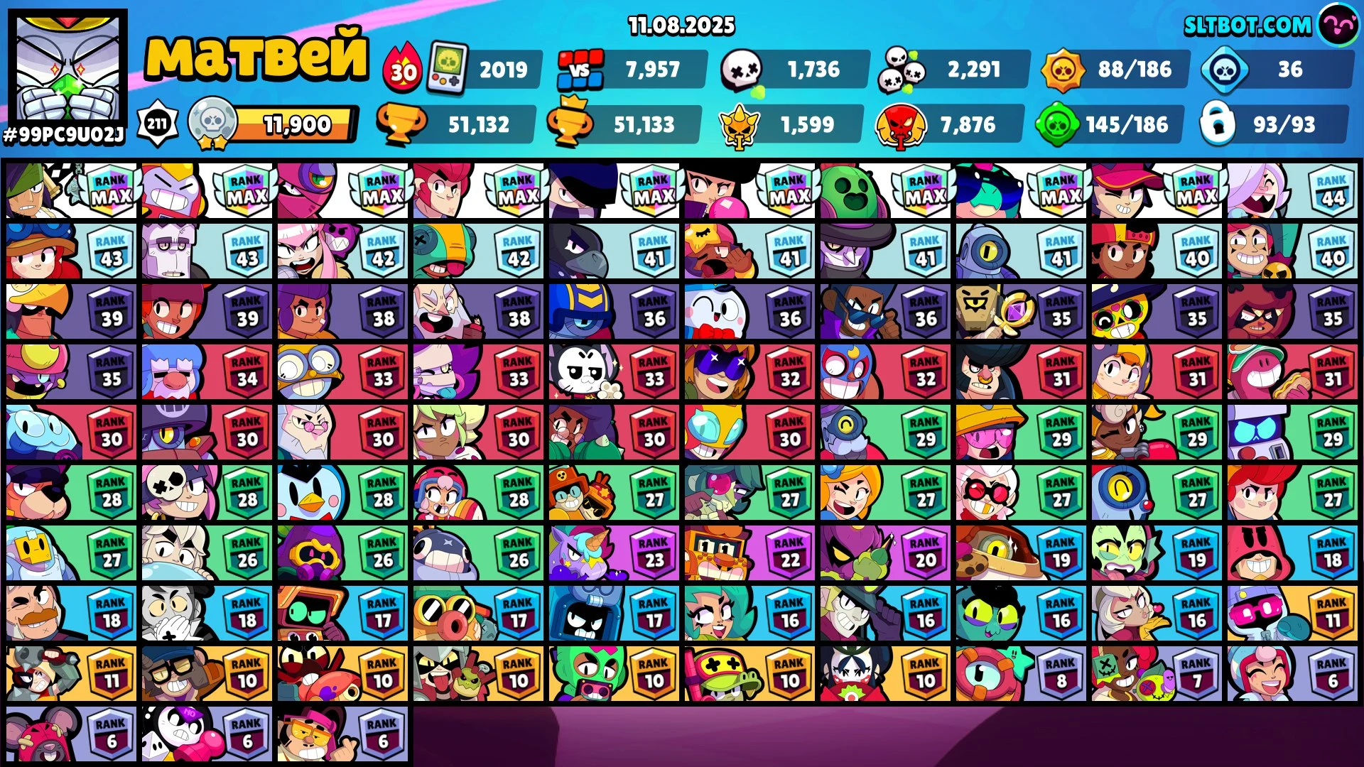 WEREWOLF LEON ⭐ KING LOU ⭐ 10 TITLES ⭐ 216 SKINS ⭐ 51.100 TROPHY ⭐ 93 BRAWLERS ⭐ 33 MAX ⭐ 28 HYPERCHARGED ⭐ MECHA MORTIS ⭐ CESAR SAM ⭐ CAPTAIN CARL ⭐ DIY SURGE ⭐ OCTO FANG ⭐ DARK LORD SPIKE ⭐ LEGENDARY ⭐ LEON