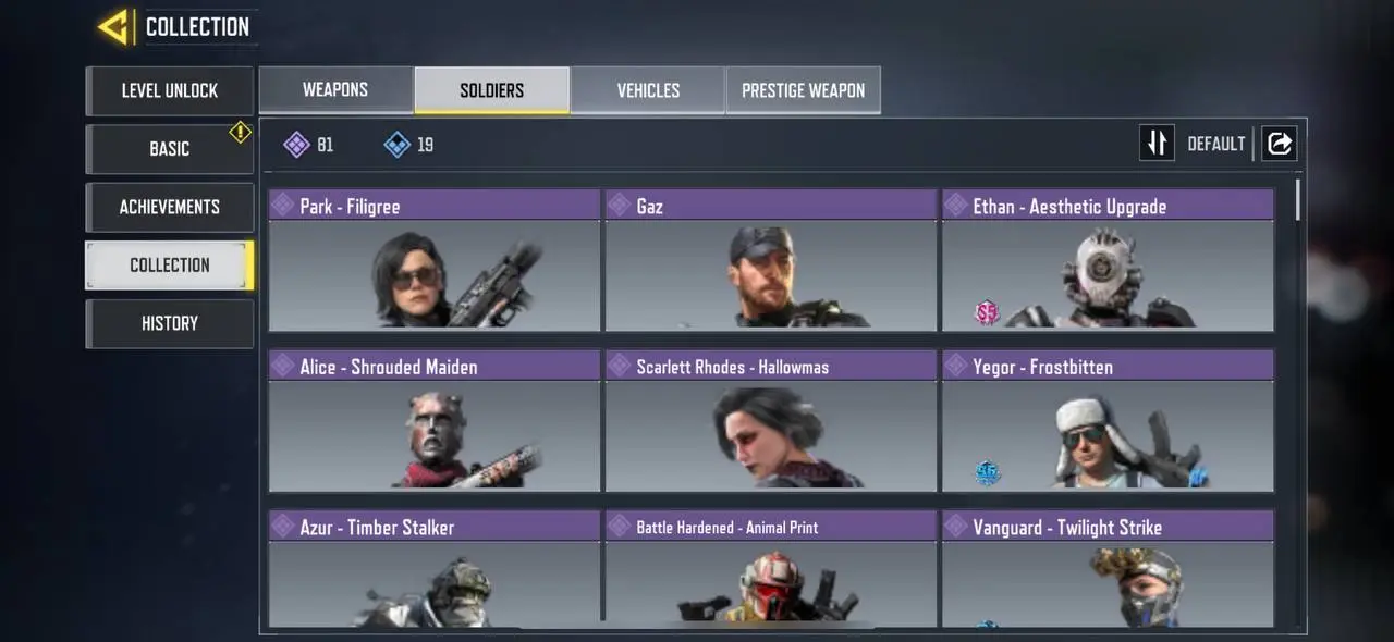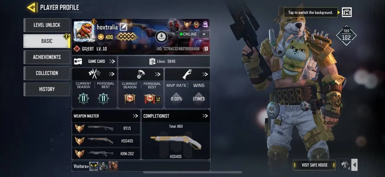 iOS Android 🎮 Level 400 🛍️ 212 Epic 🧨 8 Legendary 🫀 1 Mytich 🧩 Rank Legend 😍 81 Epic Soldier 🎯 Code601