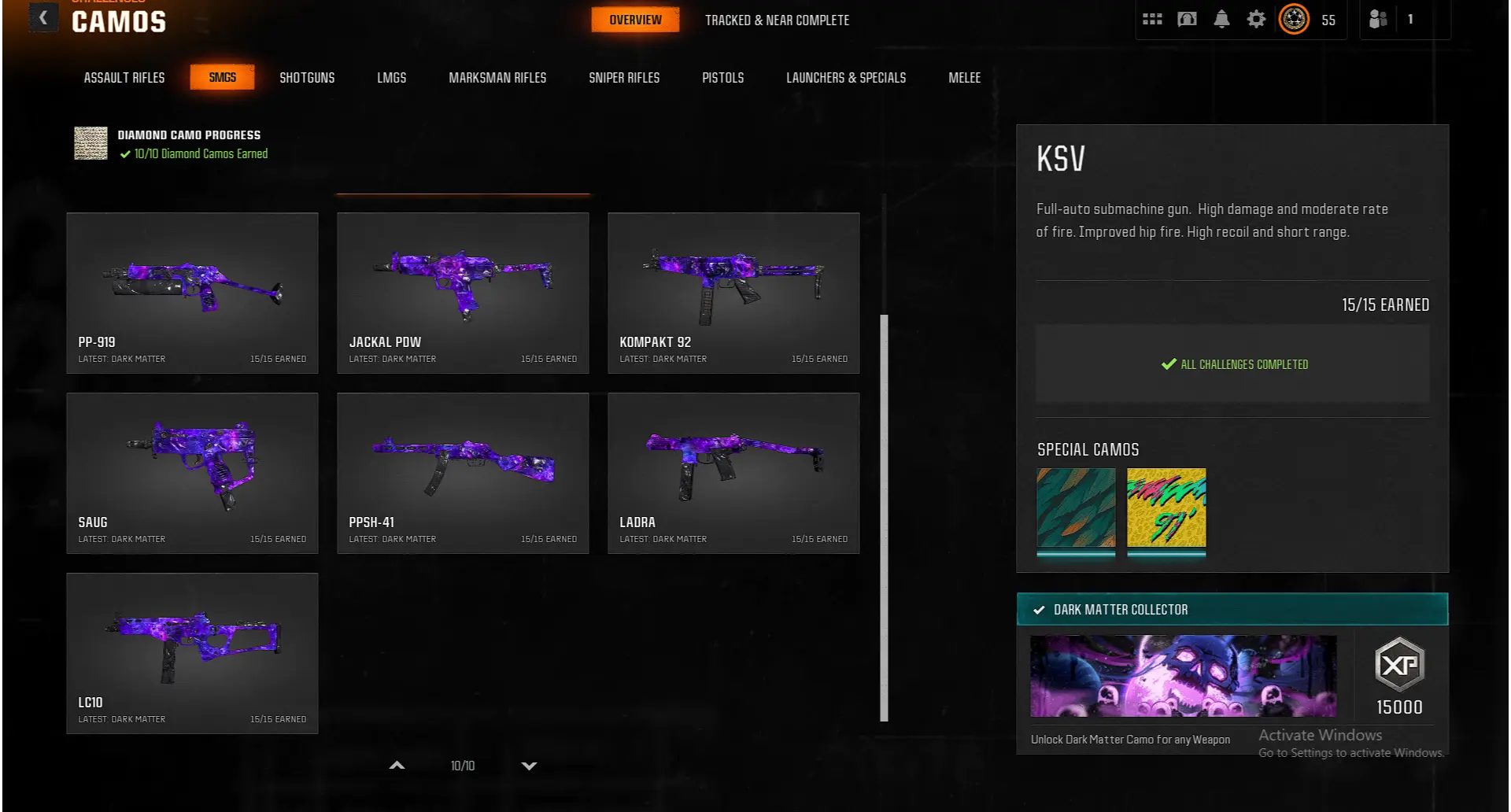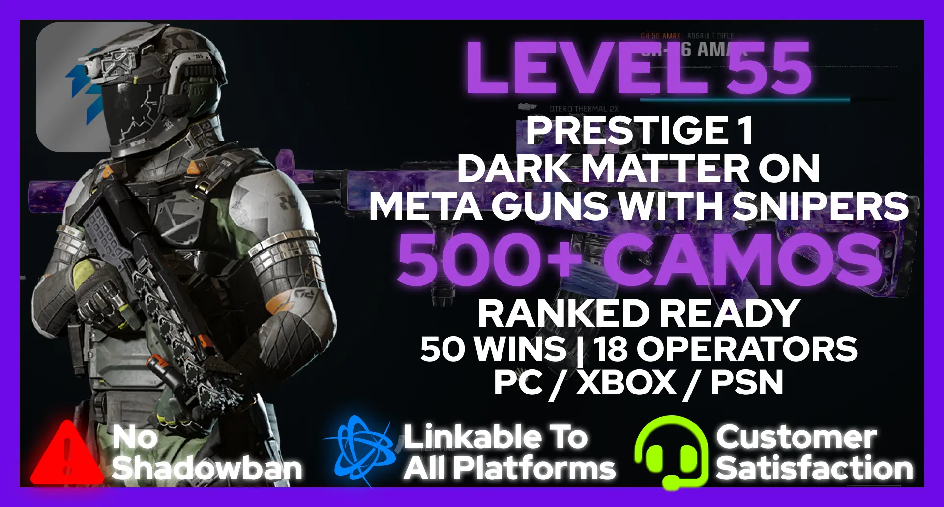 Level 55 | 33x Dark Matter Elite Guns | Prestige 1 | 18 Operators | 500+ Camos | BO6 & Warzone | Full Access