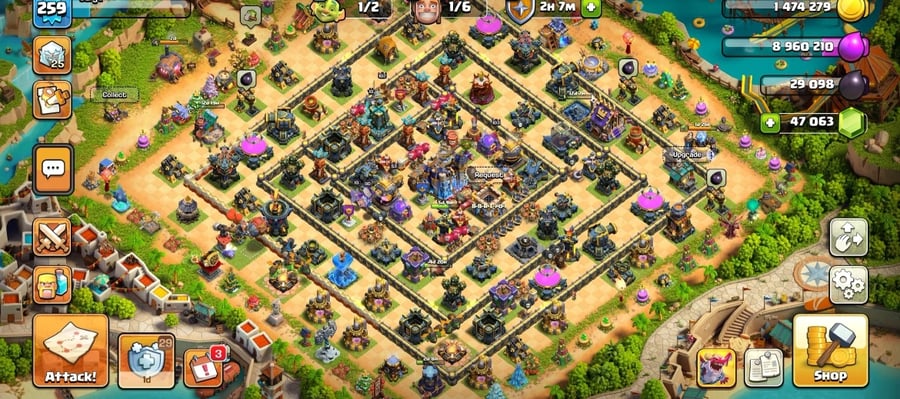 TH17 računi nalaze se na trenutnom najvišem tieru, s Inferno Artiljerijom, spojnim obranama i najvišim razinama heroja dostupnim trenutno.