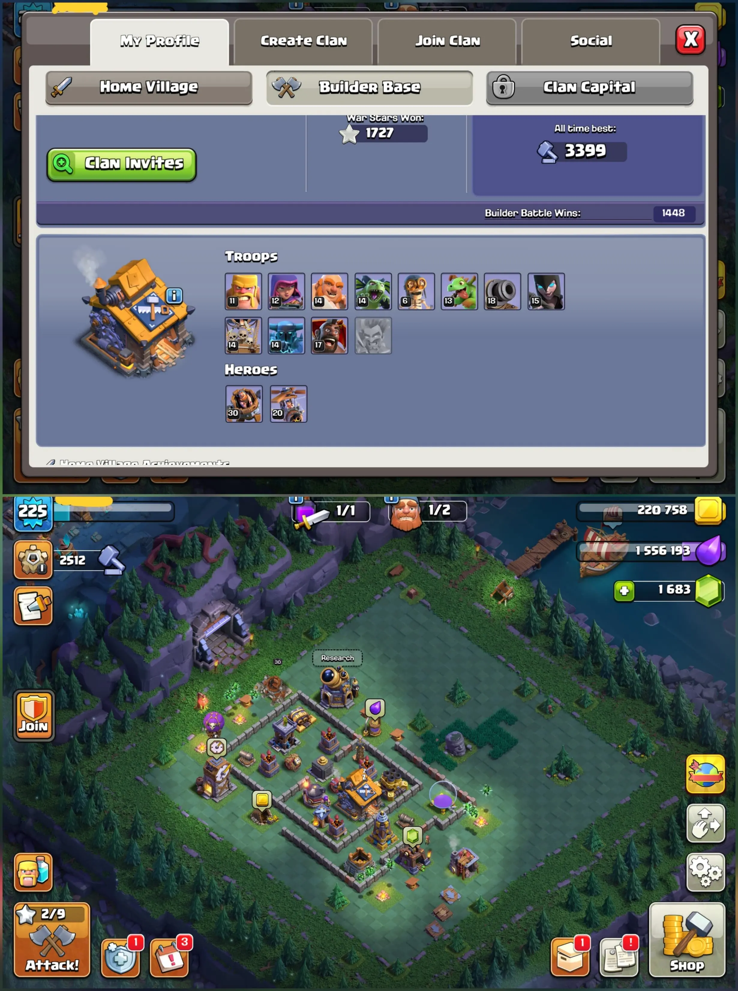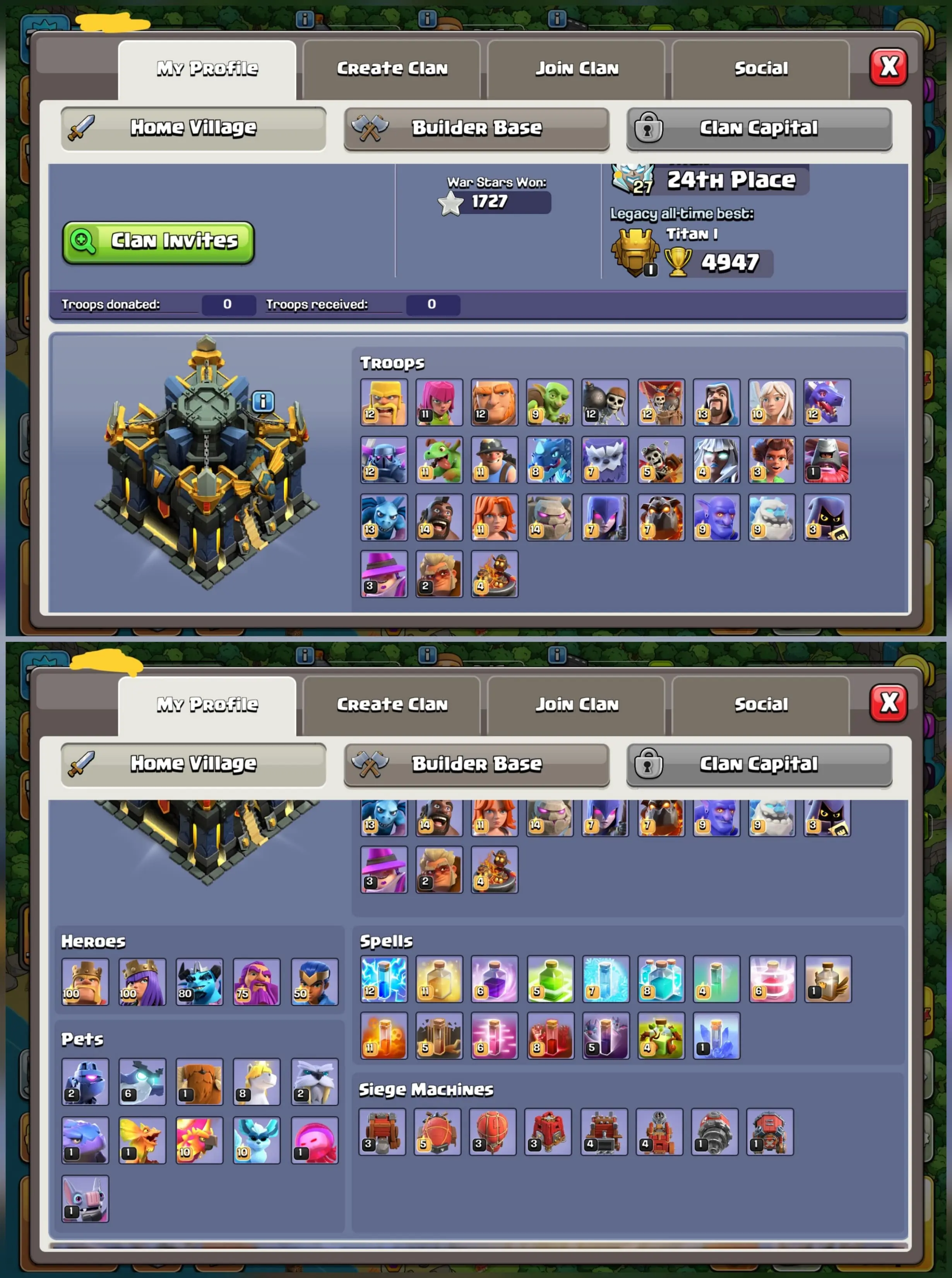 💪 4 HEROES MAX TH17 ⭐ XP 225 ⚔️ 9 EPIC EQUIPMENTS 🧾 GOOD PROFILE 🎭 13 HEROES SKINS ✏️ NAME CHANGABLE 🚀 ALMOST MAX TROOPS 📱 ANDROID & iOS ⚡ INSTANT DELIVERY