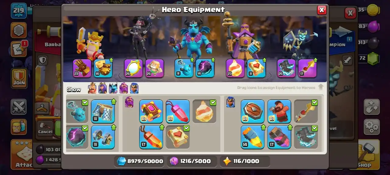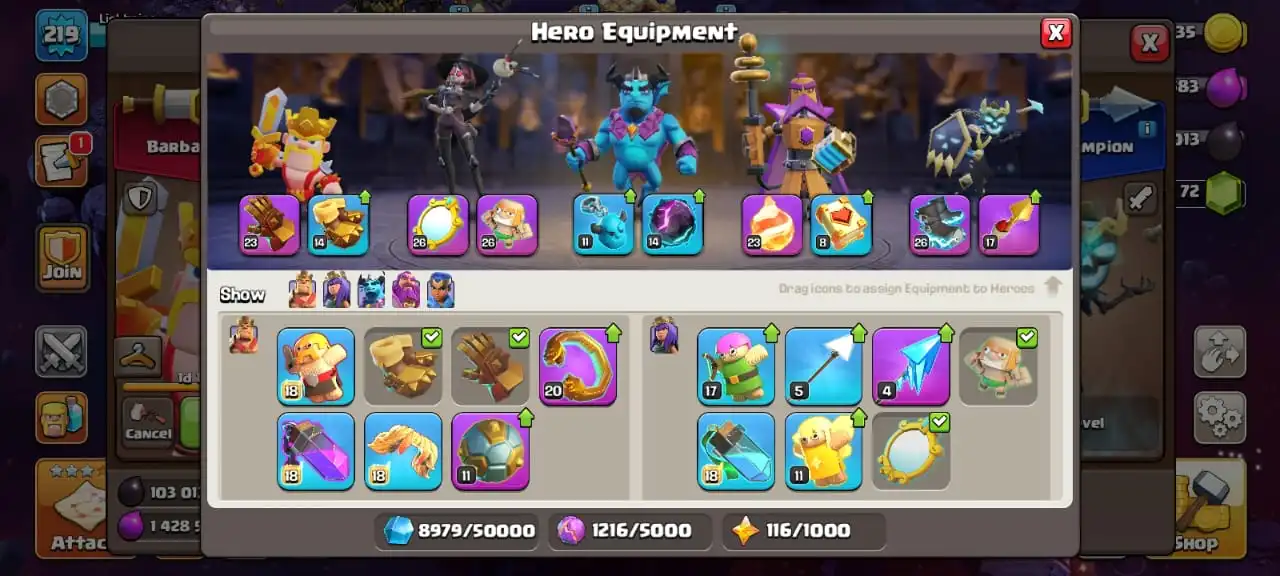 Best deal🔥TH 17 max defense🔥high heroes level 90/94/61/64/50☠️9 epic equipment⚒️6 builder’s✅2 scenery and 9 heroes skin
