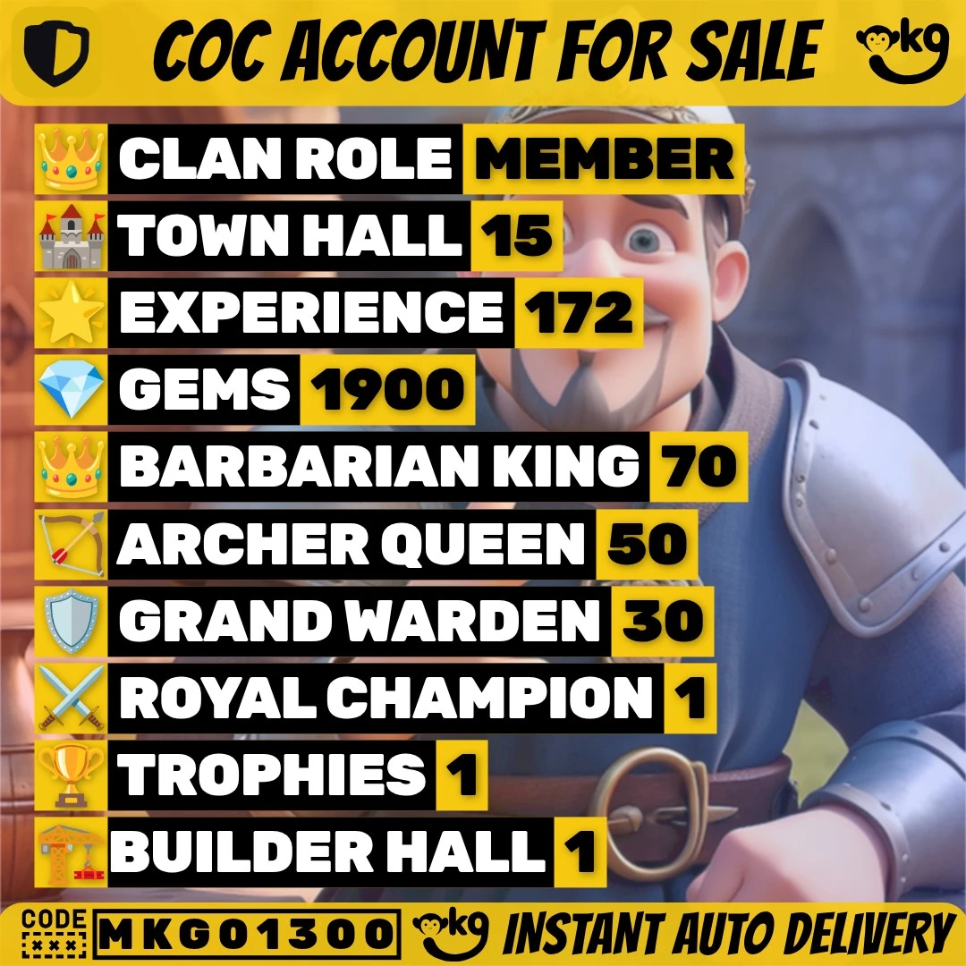 🔥 TH15 Semi Max | 🎖️ LV 172 👻 🥰 | 🤝 Best Deal 🥵 | ✨ Free Name Change 😎 | 💎 1.9K+ Gems 😍 | 🦸 7 Hero Skins (1 Legendary) ✅ | ⚔️ 1 High-Level Epic Equipment ⭐ | BK70 👌 AQ71 ✨ MP50 🤩 GW58 🫠 RC30 🌟 | 🚚 Cheap & Super Fast Delivery 💪 !MKG01300
