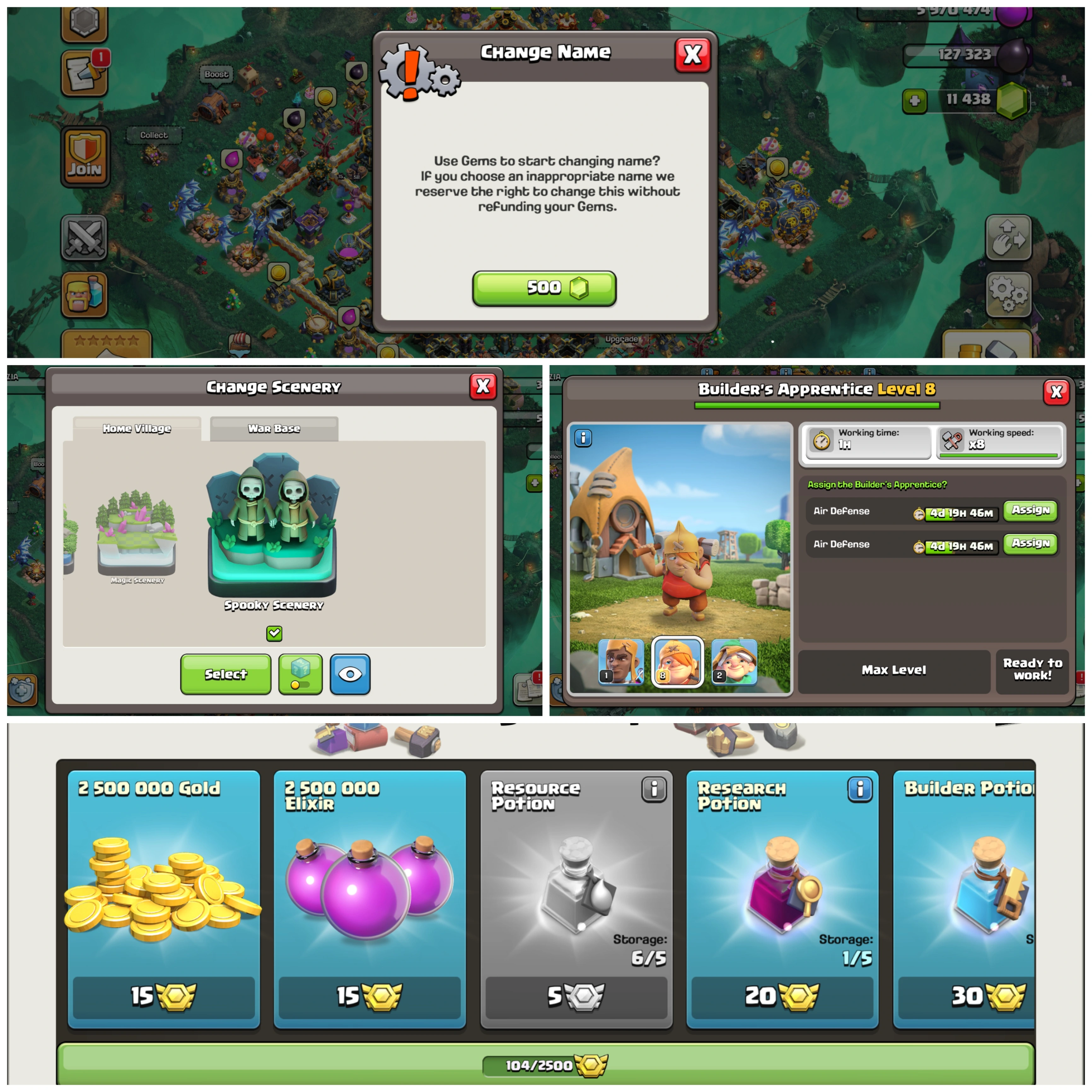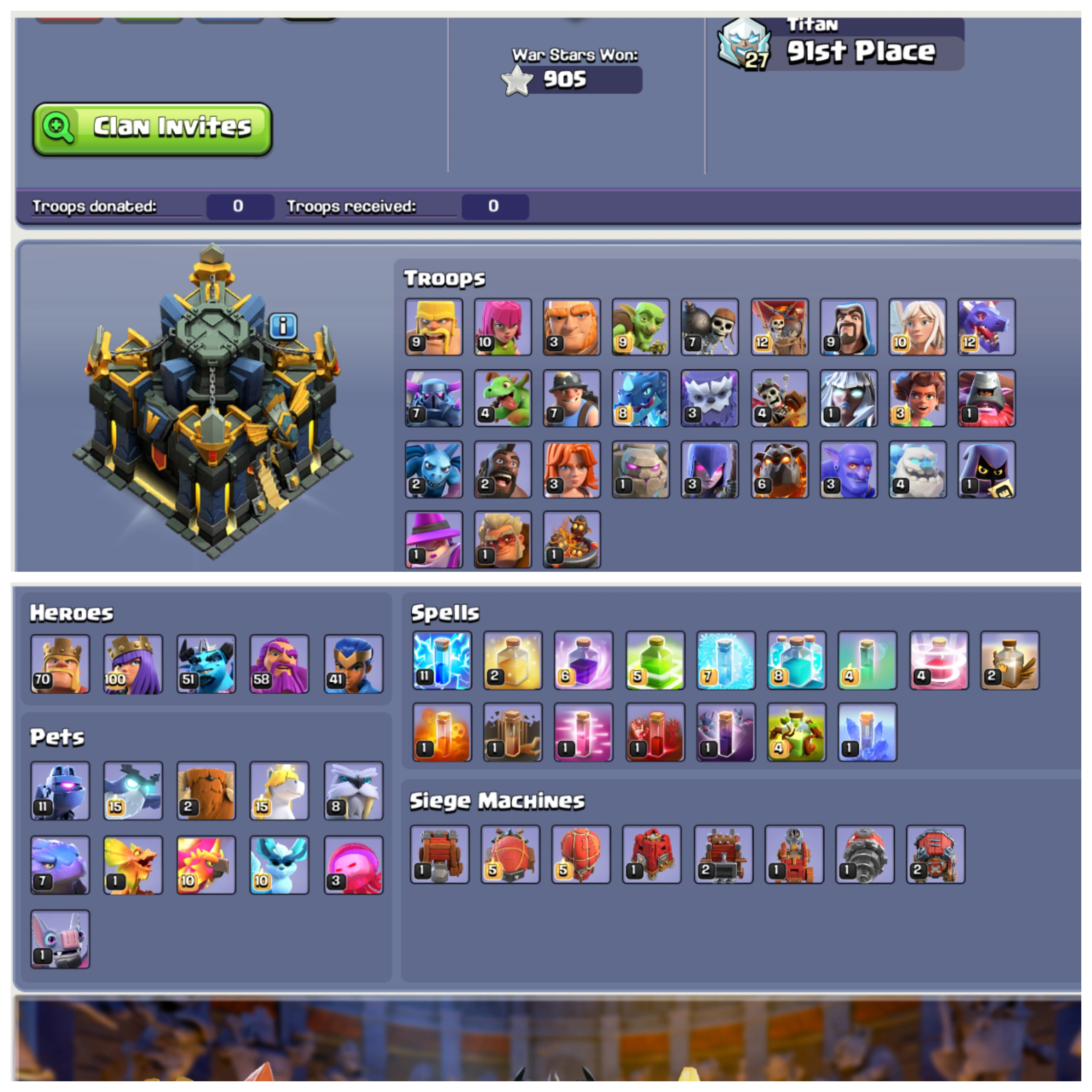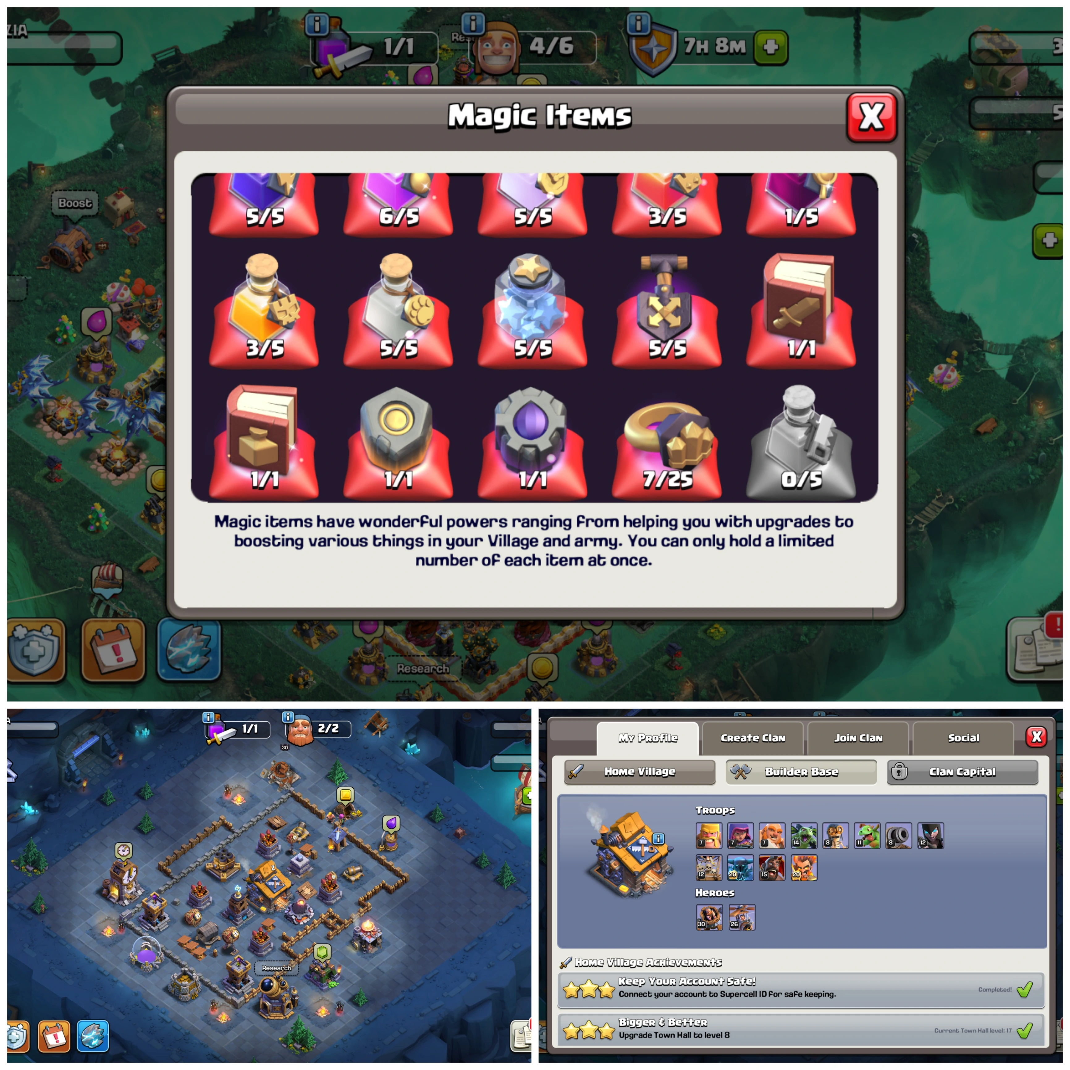 🎯 Rare: 11400 Gems 💎 TH 17 Near Max 🏞️ Spooky Scenary 🎭 8 Skins 🧙 Max Builder Apprentice 🧬 8 Epic Equipments ⚗️ 14 Max Equipments ⚡ Instant Delivery