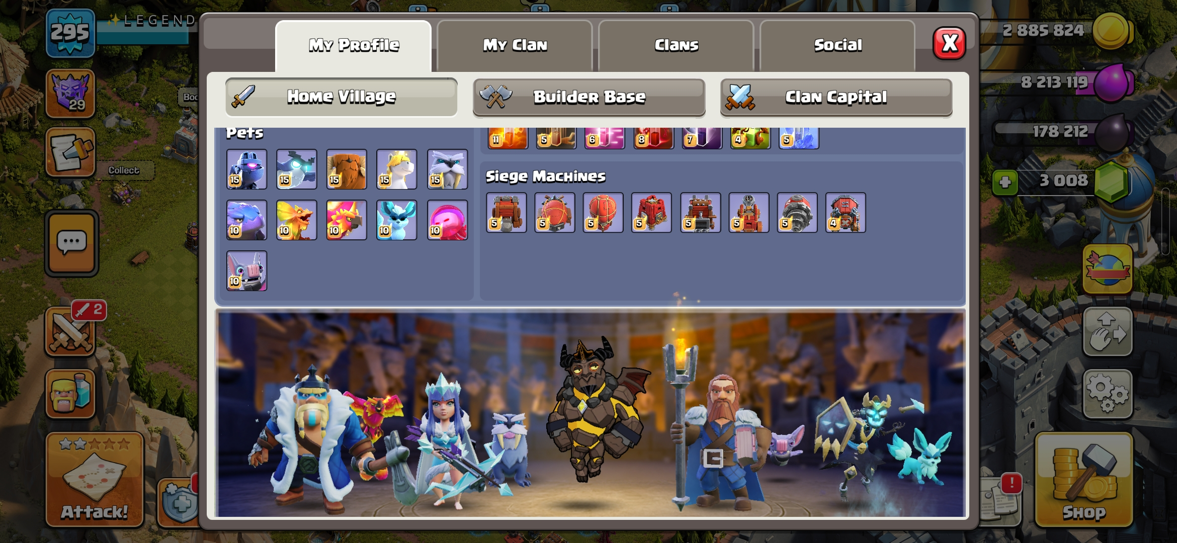 ✨️ (RAREST) 💎 295 XP 🎯 1000% MAXED TH 17 👑 LEGENDARY SCENERY 🔥 FULLY SUPERCHARGED 💪 PURELY MAXED PROFILE 🚀 EPIC EQUIPMENTS MAXED 😈 37K LEGEND TROPHIES 🏆 4.2K WAR STARS 🌟 23 HERO SKINS ☄️ ALL PETS, SIEGES & BUILDER BASE MAX 💪