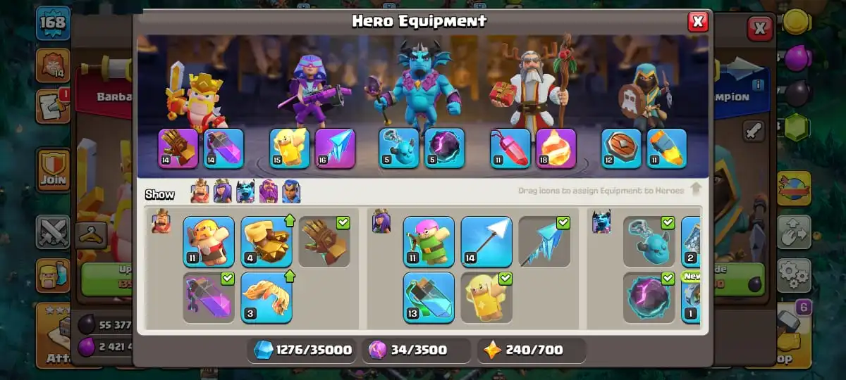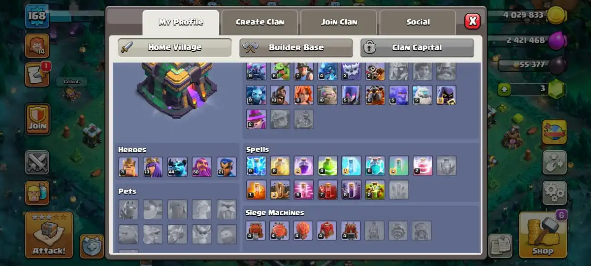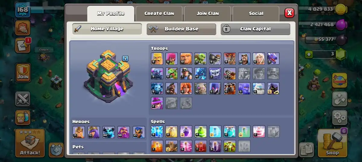 TH 14 ALL MOST MAX [ 20 HERO SKINS ]🔥HEROES 71-73-44-50-21 GIANT GAUNTLET & FROZEN ARROW & FIRE BALL & ROCKET SPEAR ON🔥PUMPKIN & TIGER MOUNTAIN SCENERY🔥MAGIC ITEMS READY🔥FULL ACCESS ACCOUNT🔥