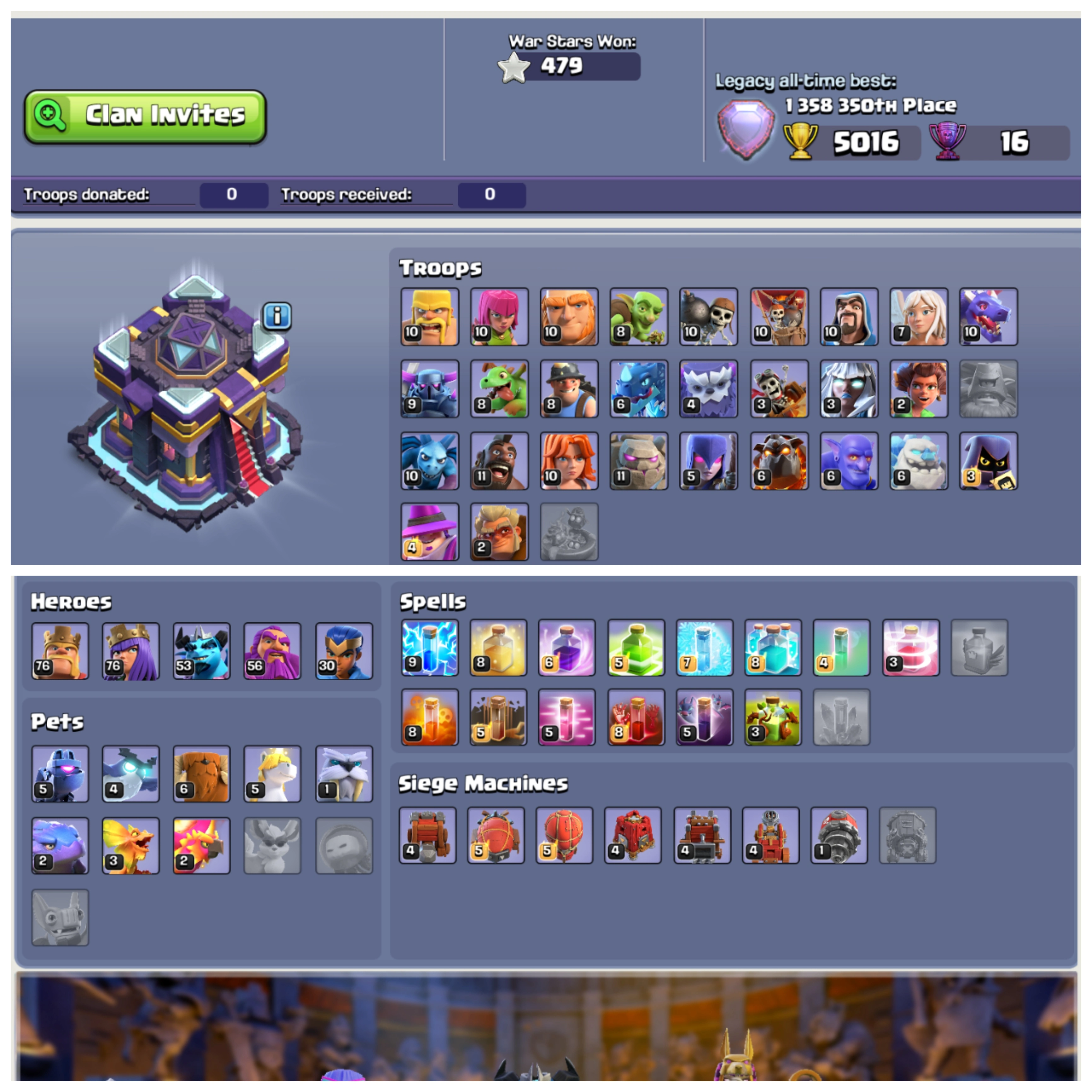 🔥 TH 15 Near Max ⚔️ 8 Epic Equipments 🌟 Heroes BK76 • AQ76 • MP53 • GW56 • RC30 🎭 10 Skins • Rare Foundation Stone ✨ Name Changeable 🚀 Instant Delivery