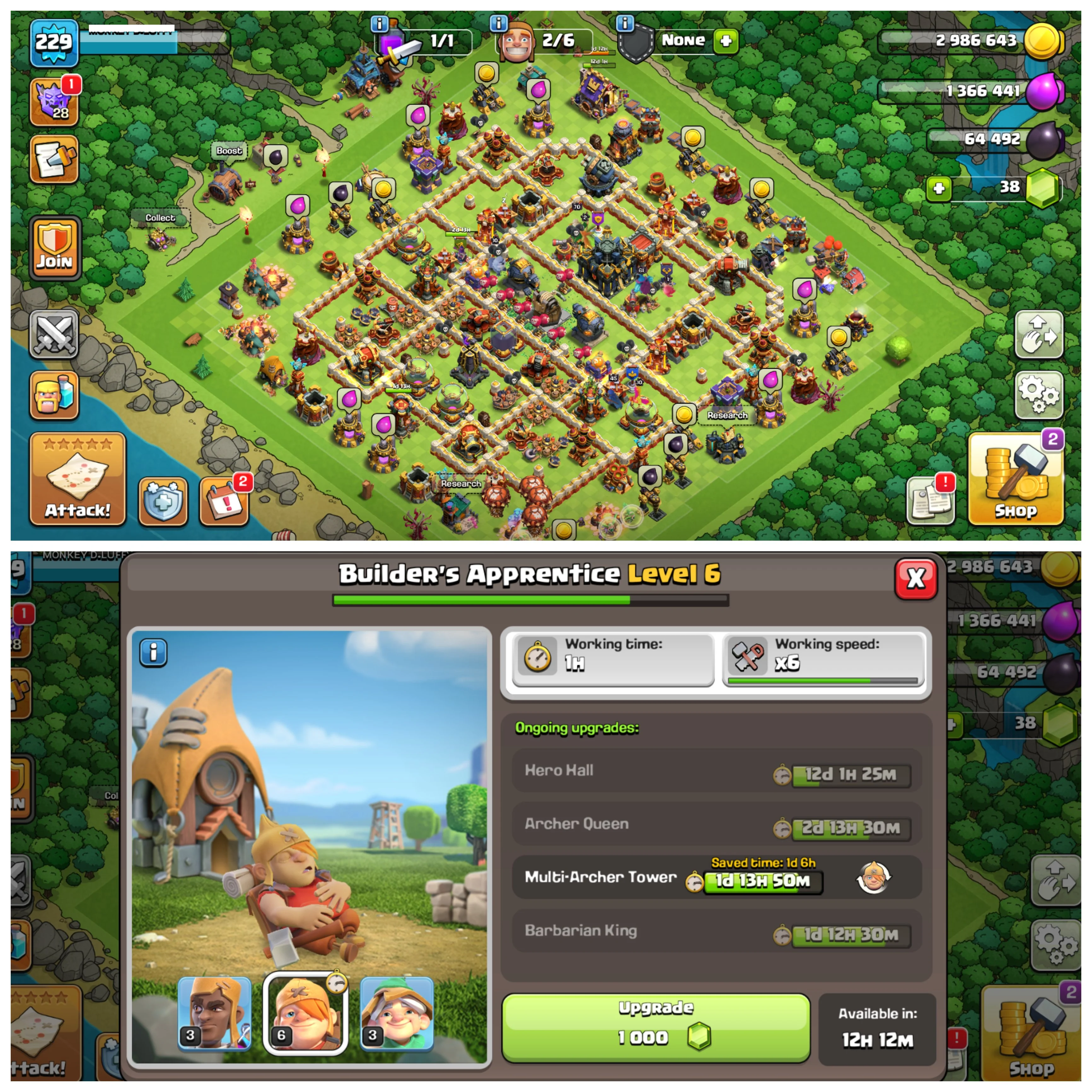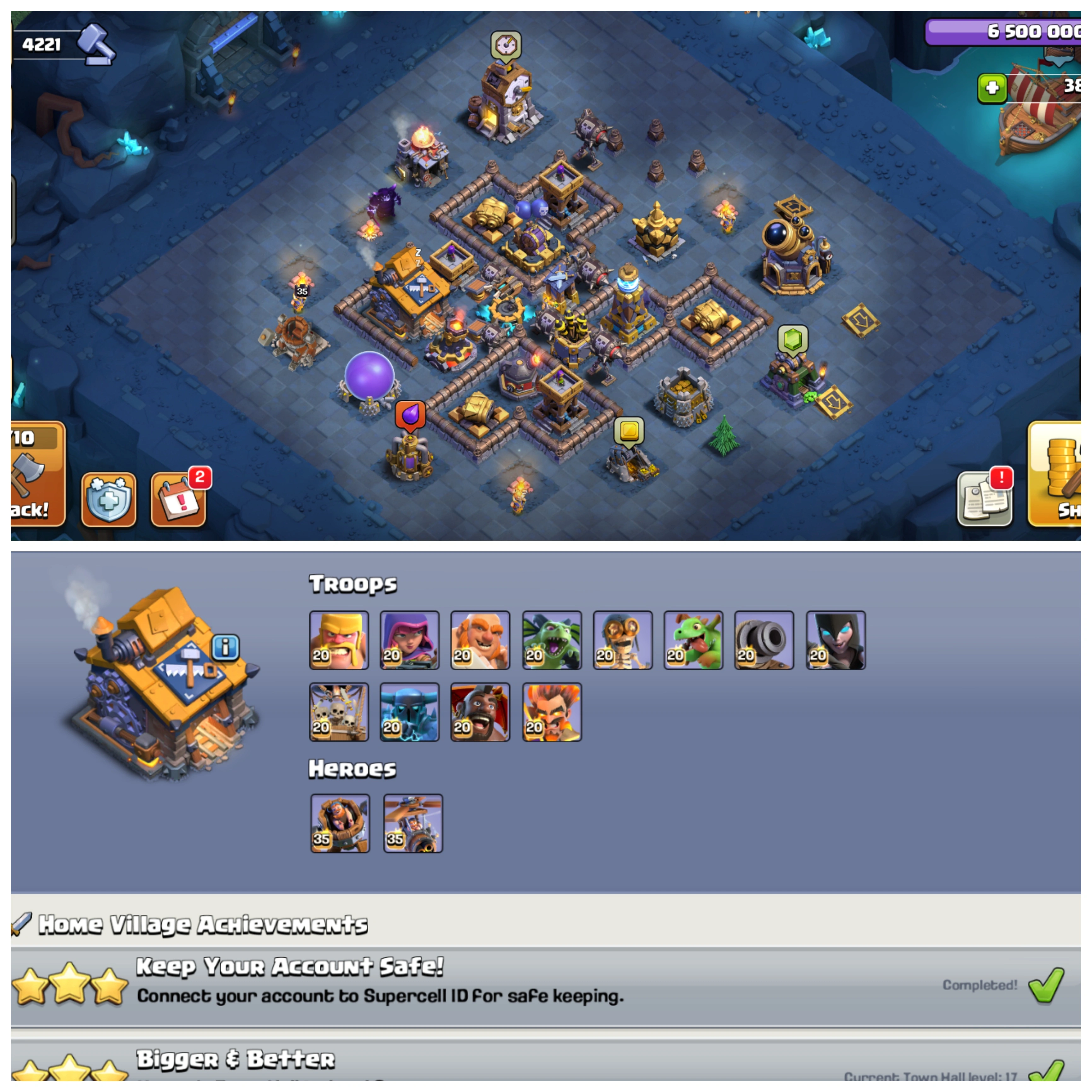 ⚡ TH 17 Power Unlimited 💥 XP 229 • 10 Epic Equipments • 19 Max Equipments 🏰 Level 6 Apprentice • Full Max BuilderHall 🌟 Crazy Profile 🚀 Instant Delivery