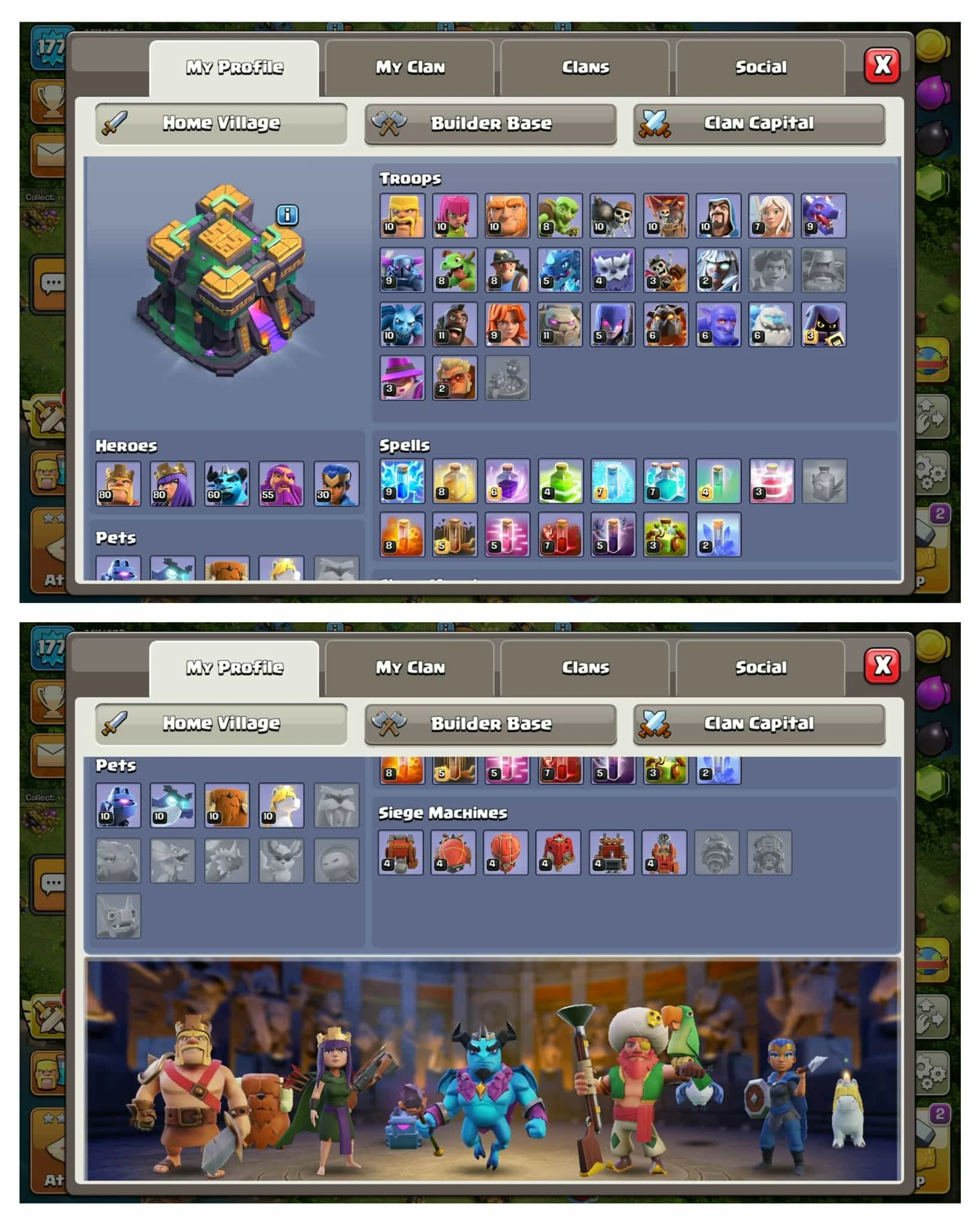 👑 Th14 Max 🔥 Ready for Townhall 15 ✨ 177 Level XP 🫅High Heroes Level 80 | 80 | 60 | 55 | 30 ⛏️ 5 Builders 💎 700 Plus Gems ✔️ Name Change at 500 Gems