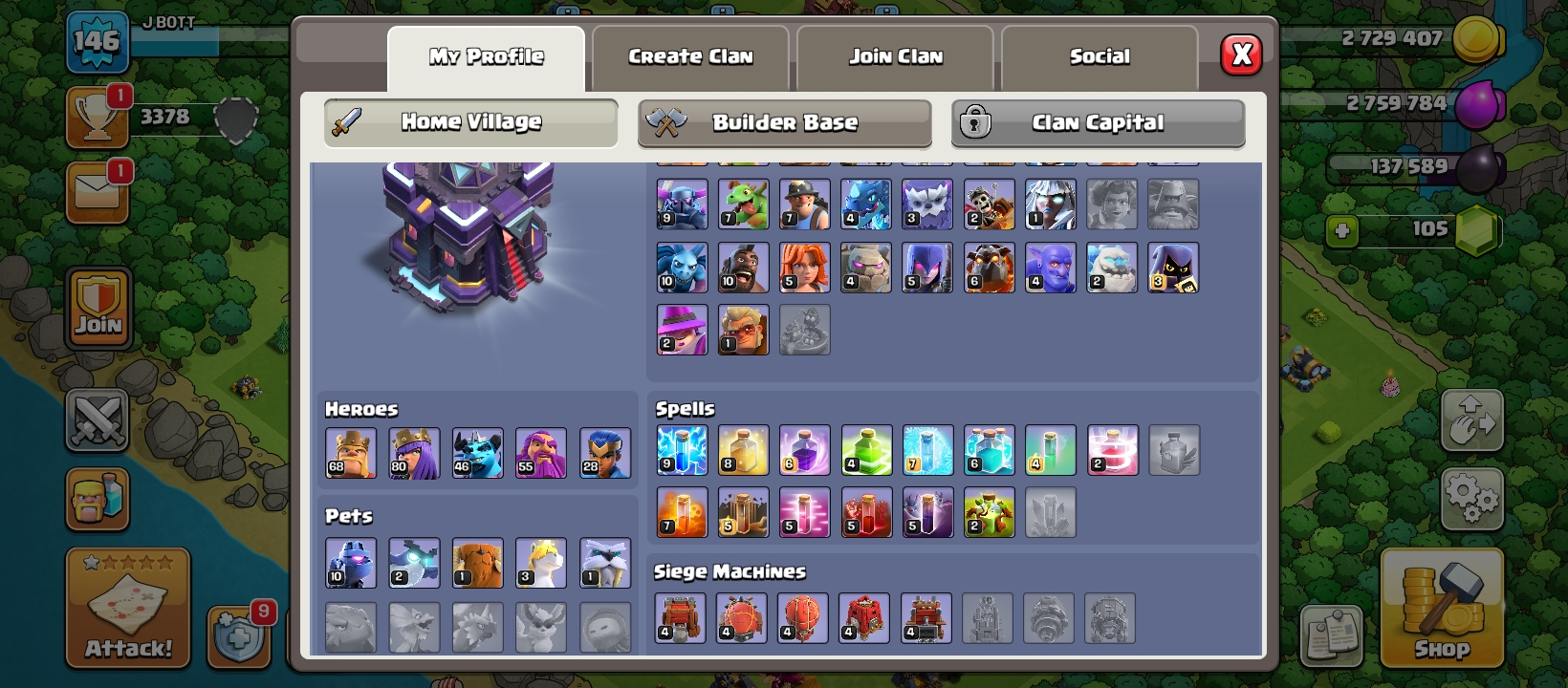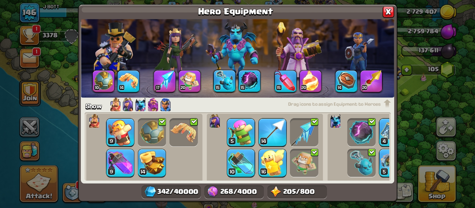 TH15 5X HIGH LVL EQUIPMENT !! XP146 !! HEROS 68-80-44-55-28 !! 6 BUILDER AND GOOD BUILDER HUT