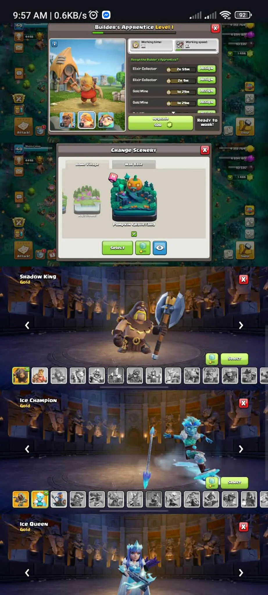 TH15 MAX ID | HERO'S: 61-57-42-31-23 | NAME CHANGE FREE | PUMPKIN GRAVEYARD SCENERY | GOLDEN WALL | 8x EPIC EQUIPMENT | XP-160 | TROOPS & SPELL MAX